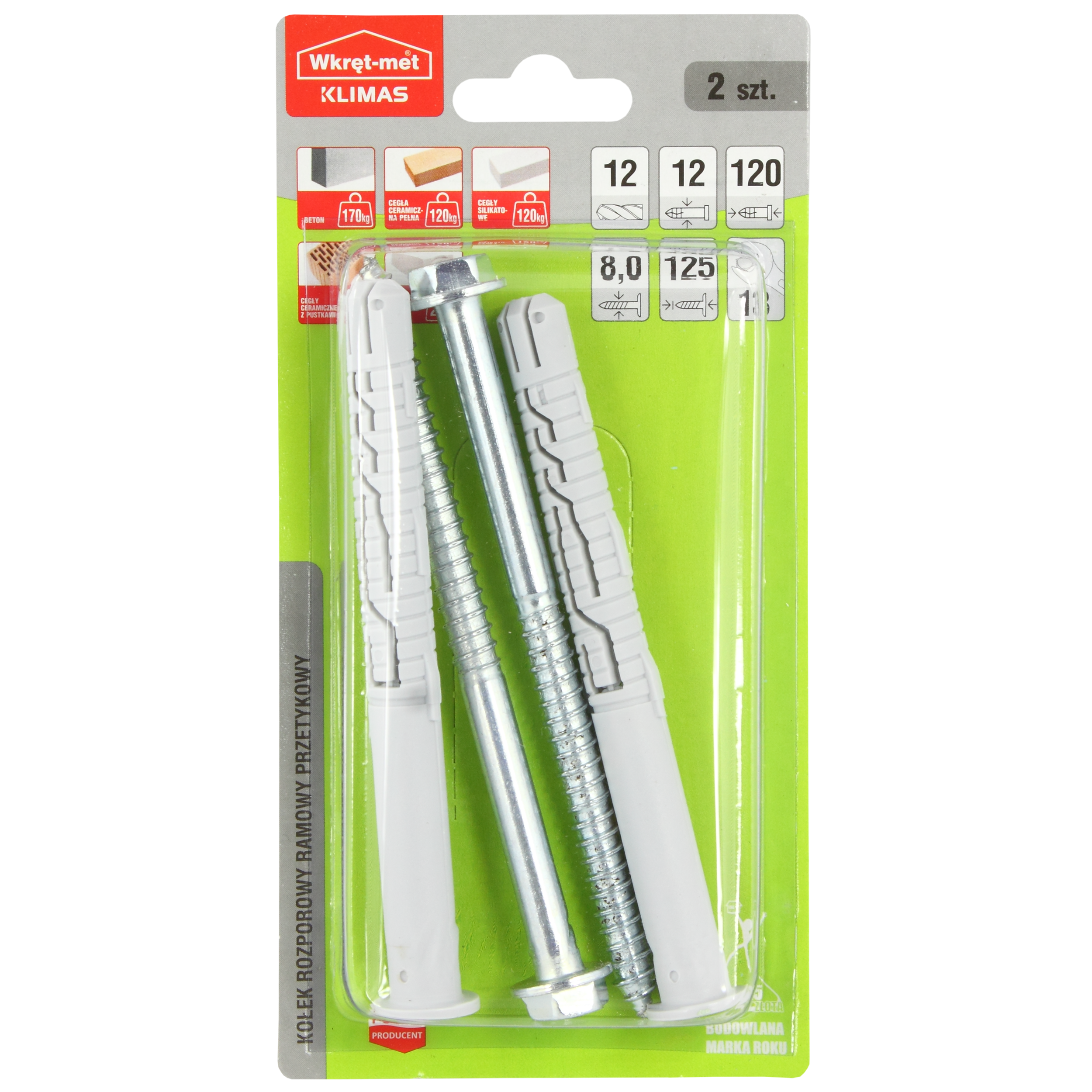 Kołek ramowy 12 x 120 mm 2 szt. Wkręt-met