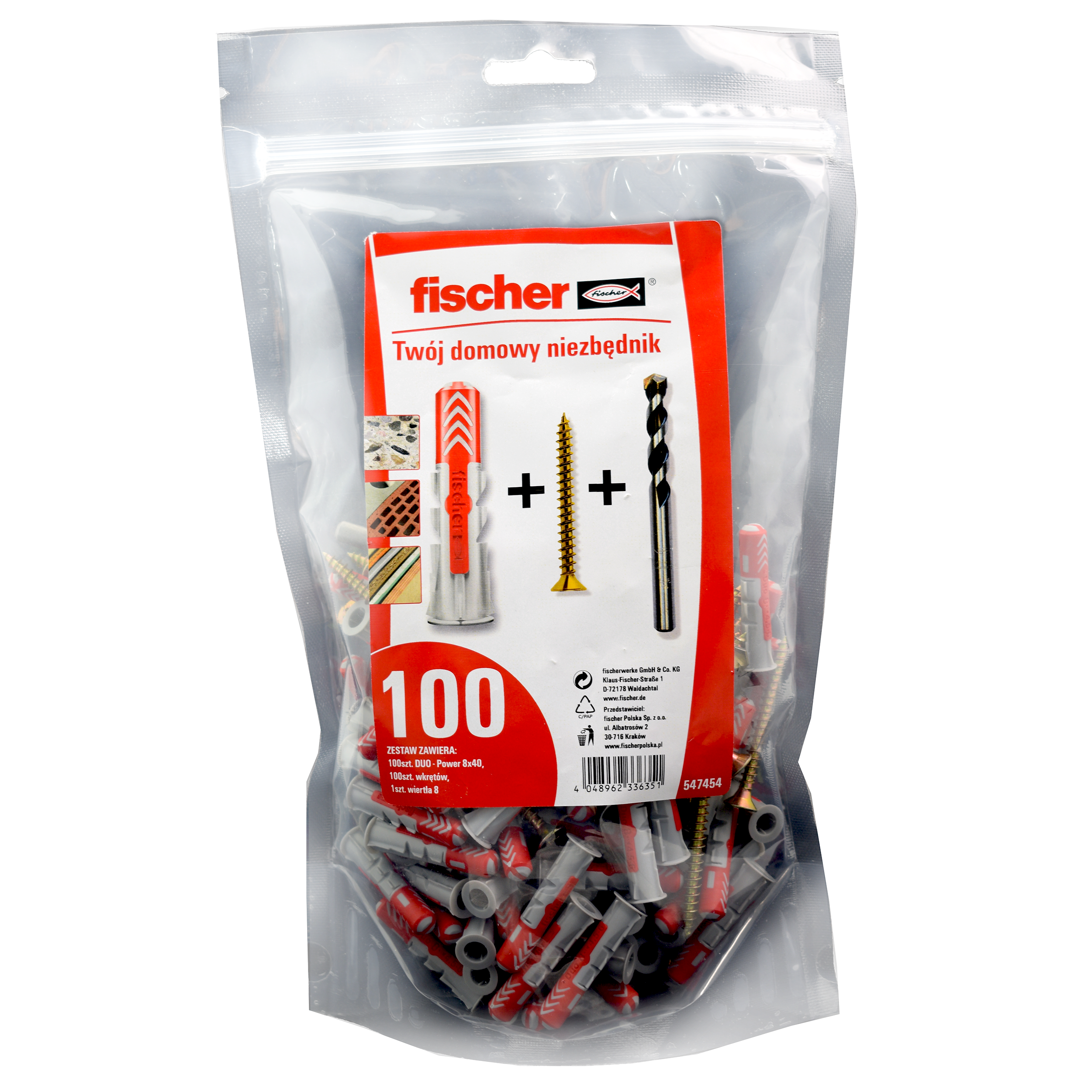 | Zawartość zestawu | 100x DUOPOWER 8X40, 100x wkręt, 1x wiertło |