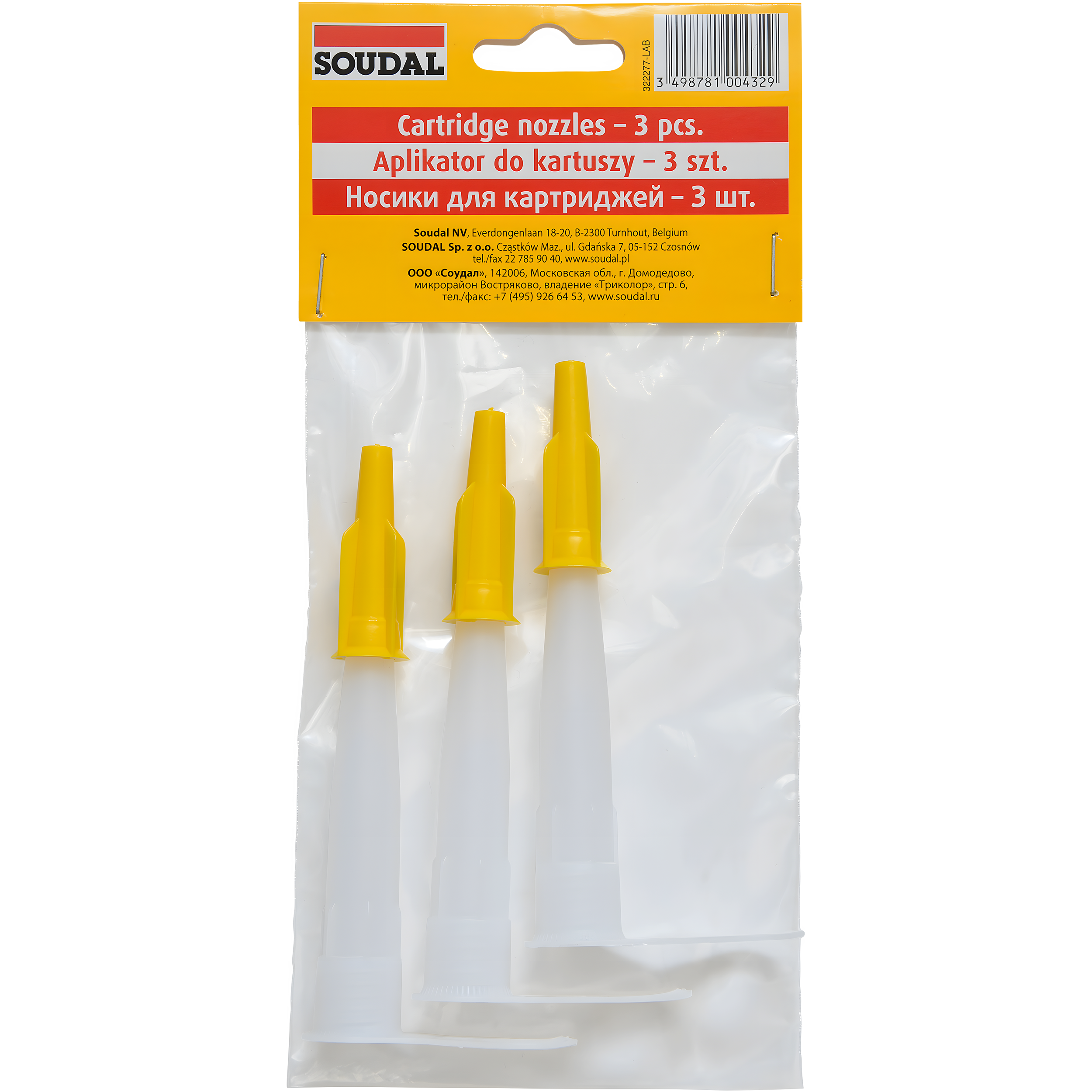 Zestaw aplikatorów z zakrętką do standardowych kartuszy z klejami lub uszczelniaczami.