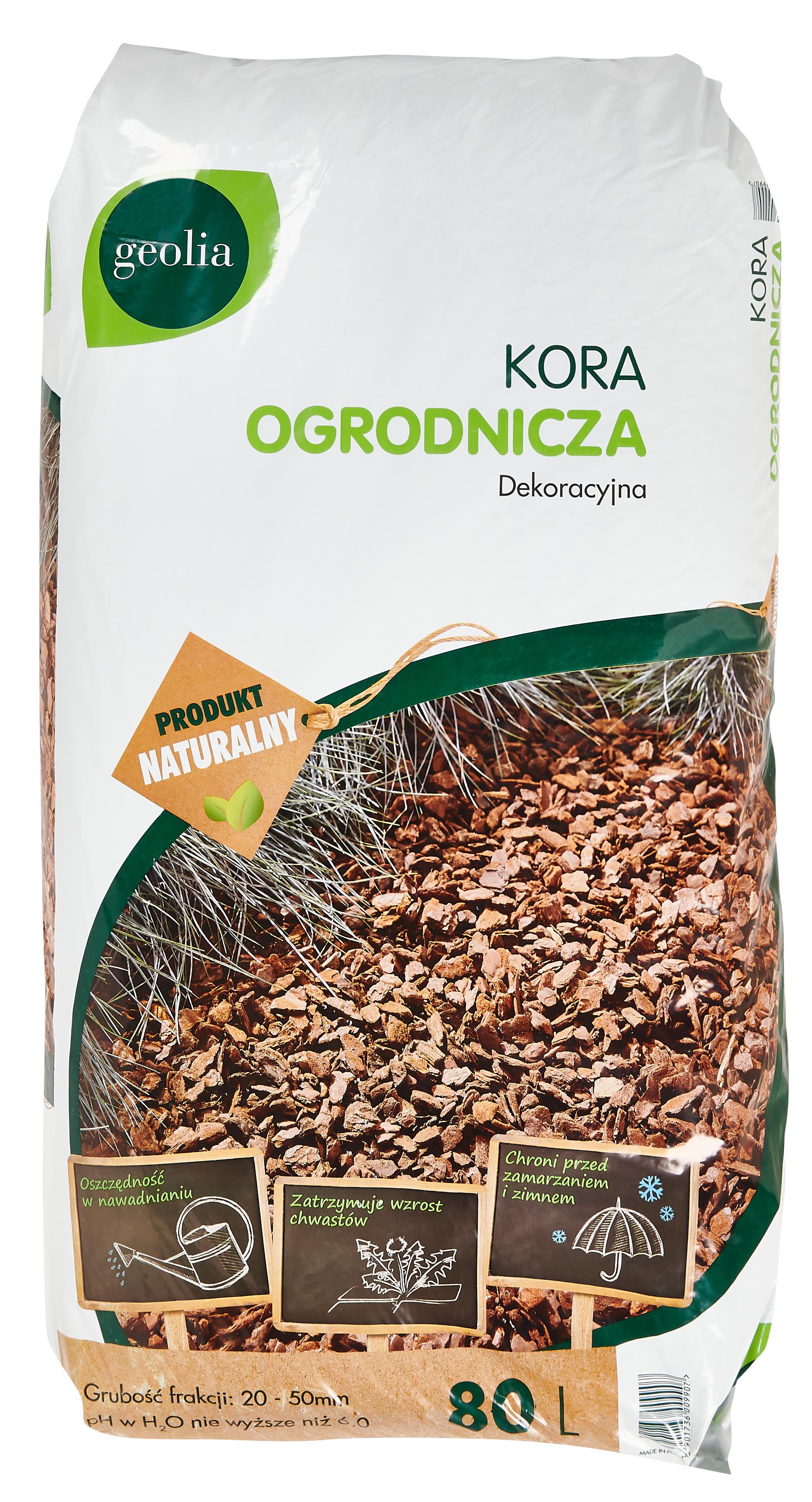 | Zastosowanie produktu | Ochrona podłoża przed wyschnięciem i zmianami temperatur, hamuje wzrost chwastów |