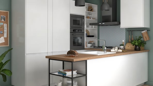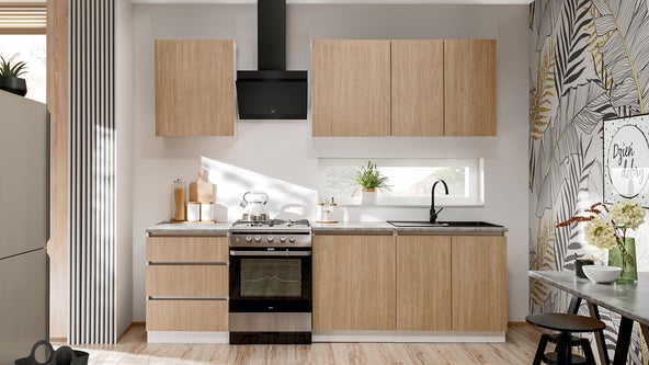 Złóż zamówienie online lub w Twoim sklepie na produkty wykorzystane w projekcie. Na Twoje życzenie dostarczymy i wniesiemy Ci kuchnię pod wskazany adres. Kupując meble kuchenne w sklepie Leroy Merlin, możesz skorzystać z oferty ich kompleksowego montażu.