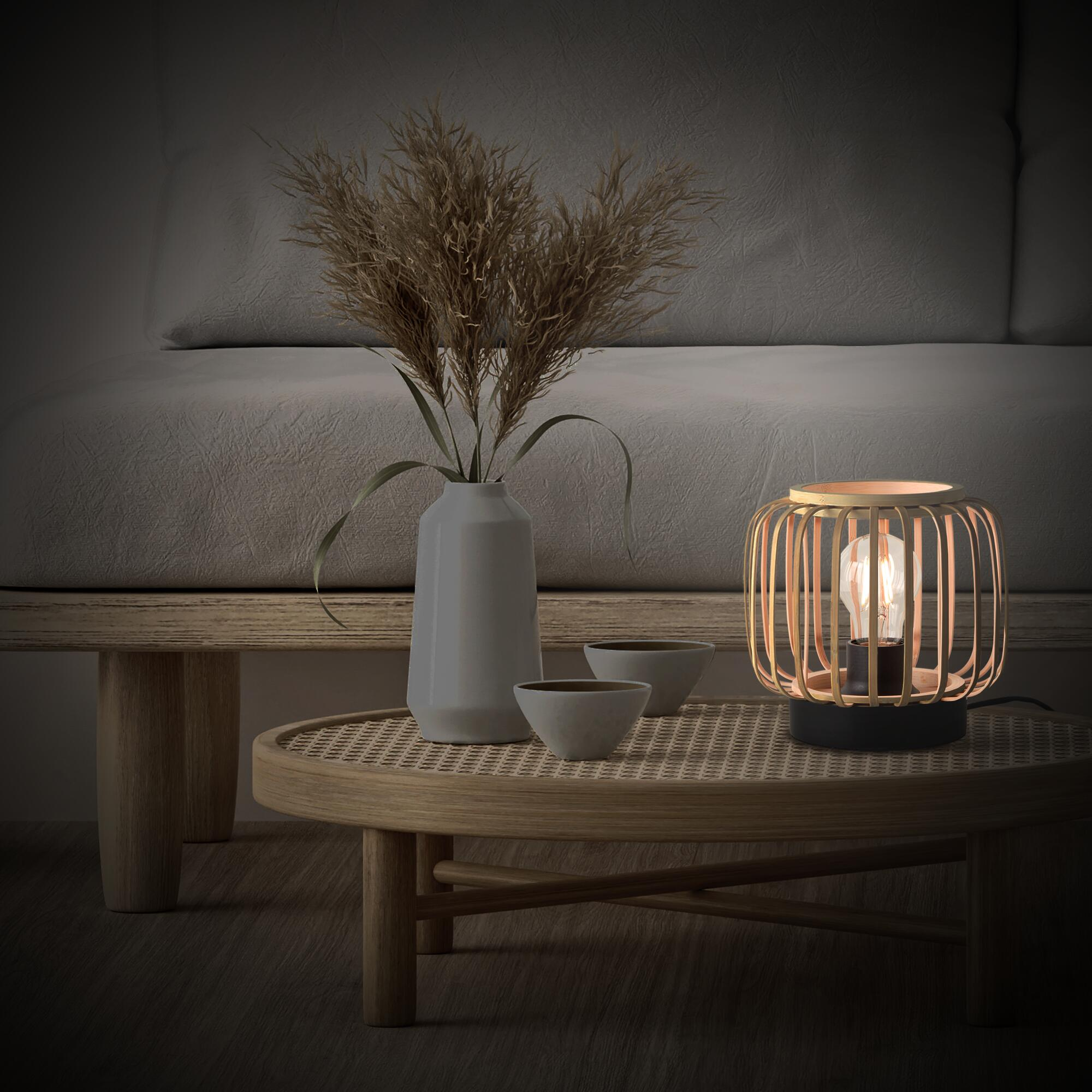 Ta lampa stołowa Inspire Pecan o wysokości 17,5 cm i średnicy 18 cm nada Twojemu wnętrzu ciepły akcent. Wykonano ją z innowacyjnego materiału, naturalnie zrównoważonego zasobu, który szybko rośnie i ma ciepły wygląd: bambusa. Produkt ten idealnie nadaje się do wniesienia dodatkowego oświetlenia oraz do dekoracji, tworząc efekt świetlny w salonie np. przy jednoczesnym uwydatnieniu pięknej żarówki dekoracyjnej. Możesz spersonalizować renderowanie światła, wybierając żarówkę E27 Lexman dostosowaną do Twoich potrzeb. Jeśli chcesz cieszyć się efektem świetlnym, jaki produkt przyniesie na Twojej ścianie, zalecamy użycie przezroczystej żarówki dekoracyjnej z żarnikami. Żarówka sprzedawana jest osobno. Ten produkt Inspire jest objęty 5-letnią gwarancją. Możesz również skoordynować ten produkt z innymi produktami z tej samej serii, jeśli chcesz. Długość kabla to 165cm