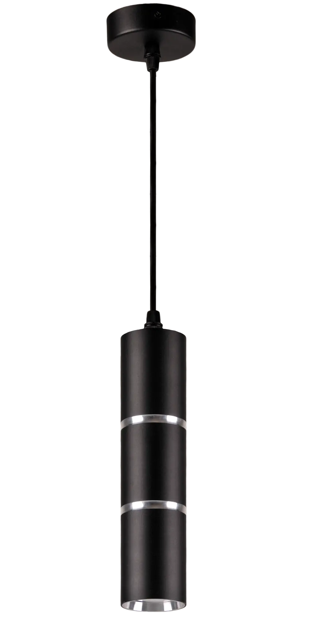 Lampa wisząca w kolorze czarnym z dekoracyjnym srebrnym akcentem, wykonana z aluminium. Lampa mocowana do sufitu z możliwością regulacji wysokości max to 121 cm. Świetnie sprawdzi się w nowoczesnej jak i klasycznej aranżacji naszego domu, mieszkania a nawet biura. Lampa posiada wymienne źródło światła na gwint GU10, żarówka led max 10W LED.