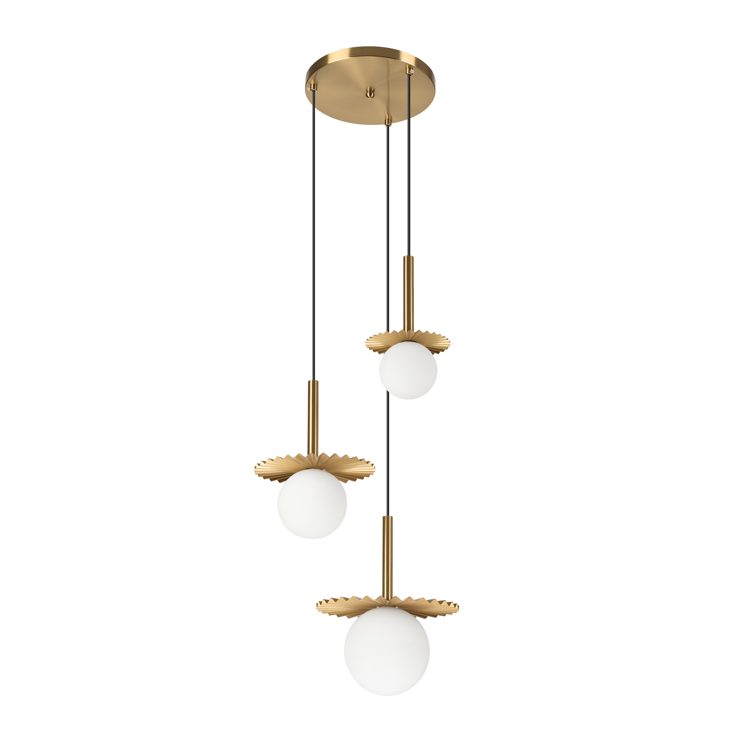 Lampa CHITA jest bardzo efektowna. Składa się z trzech osobnych punktów świetlnych. Każdy punkt umieszczony jest na innej wysokości i dodatkowo posiada różne wymiary. Głównym elementem każdego punktu jest pionowy korpus, ryflowany dekoracyjny metalowy talerz – oba te elementy w miedziano – złotym kolorze. Do nich przykręcane są białe klosze w kształcie kuli. Całość zawieszona jest na czarnych kontrastowych przewodach. Kolorystyka ma uniwersalne zastosowanie – połączenie miedzi, bieli i czerni sprawdzi się w każdym typie pomieszczeń. Model może funkcjonować samodzielnie lub być skomponowany w pomieszczeniu z innymi modelami z kolekcji CHITA. Montaż lampy do powierzchni sufitu odbywa się za pomocą metalowego wspornika ukrytego w puszce montażowej. Lampę CHITA można komponować z innymi modelami z kolekcji. Dzięki możliwości łatwego demontażu talerza – łatwo można utrzymać lampę w czystości.