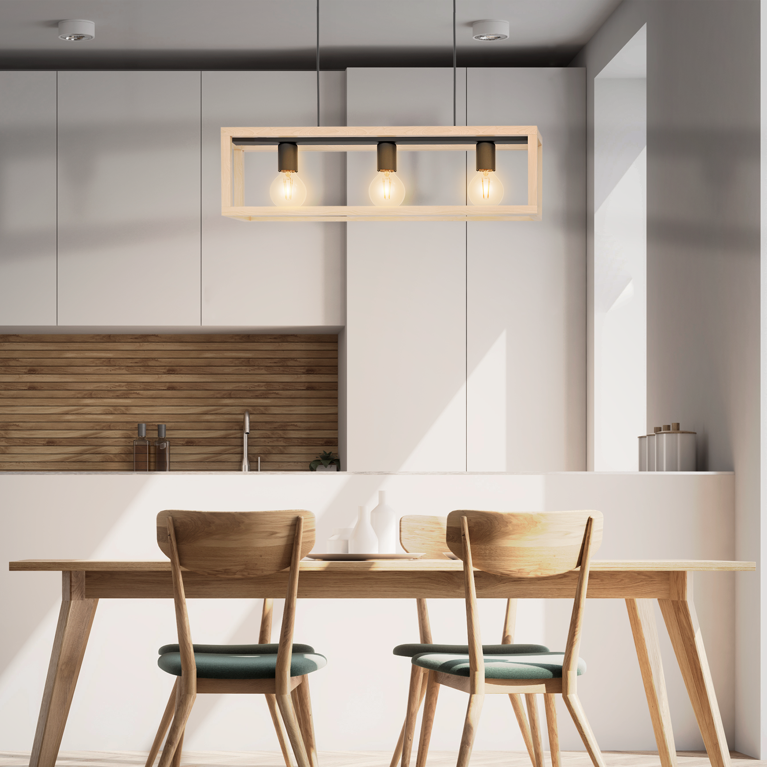 Ta lampa wisząca Inspire jest wykonana z naturalnego drewna FSC z 3 światłami i długości 70 cm. Doskonale oświetli Twoją industrialną dekorację, szczególnie w średnich i dużych pomieszczeniach. Umieść go na przykład nad stołem w jadalni lub wyspą kuchenną, aby jak najlepiej go wykorzystać. Dodaj trzy wybrane żarówki E27 Lexman: zalecamy żarówki żarowe, aby dopełnić wygląd tego urządzenia. Jeśli podoba Ci się seria ELGORT, powinieneś wiedzieć, że możesz skoordynować ten produkt z innymi produktami z tej samej serii. Ten produkt Inspire jest produkowany w Europie i objęty 5-letnią gwarancją