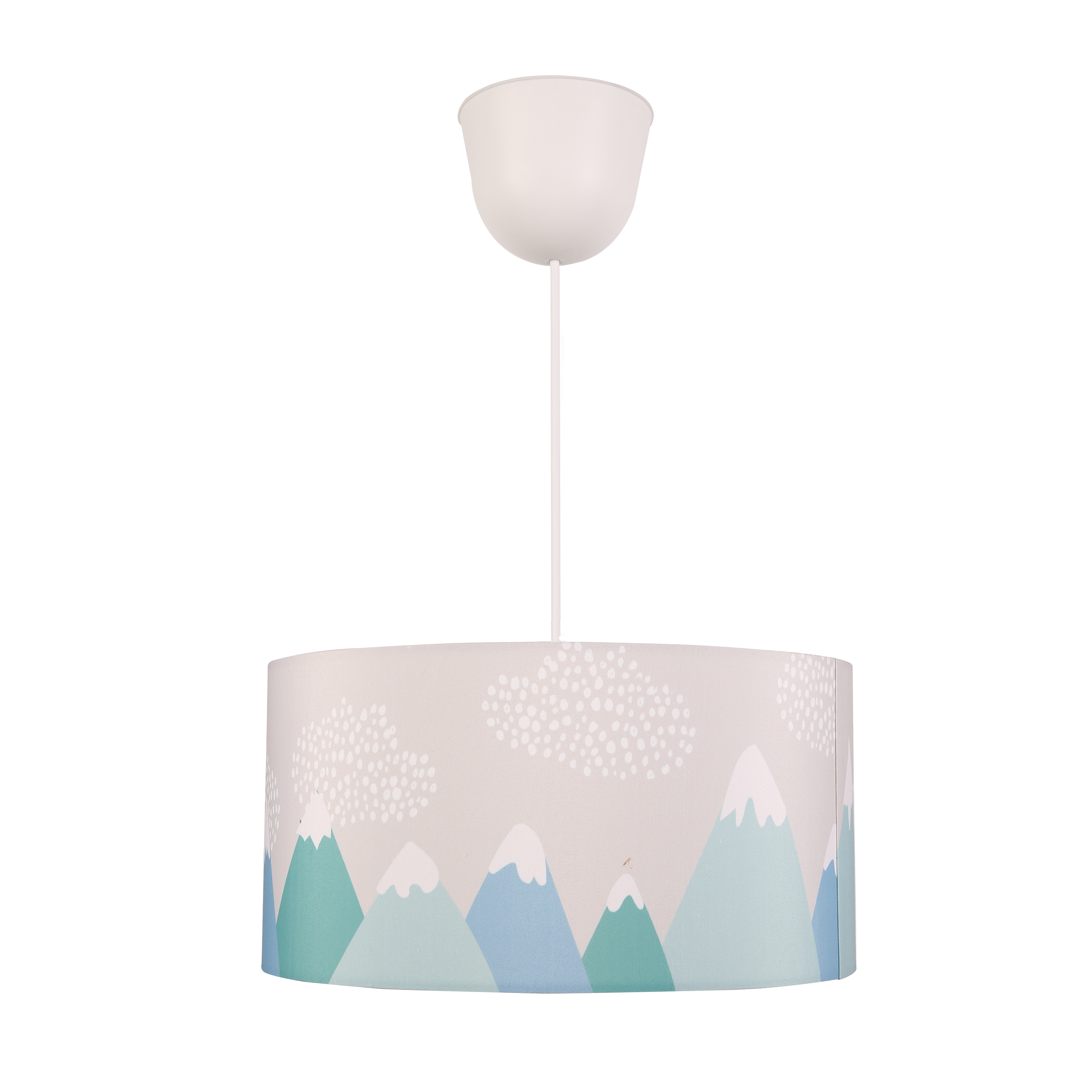 Lampa Hill marki Inspire to piękne oświetlenie wiszące dla dzieci. Lampa jest idealna do pokoju noworodka i małego dziecka, jednak spodoba się też nastolatkom. Na kloszu są urocze góry w pięknych pastelowych kolorach. Oprócz słodkiego i atrakcyjnego wyglądu, oświetlenie wiszące dla dzieci to także sprytny sposób na oświetlenie miejsc, w których dzieci śpią, uczą się i bawią. Możesz wybrać dowolną żarówkę E27 zgodnie z oczekiwanym efektem świetlnym dzięki naszej szerokiej ofercie żarówek Lexman.