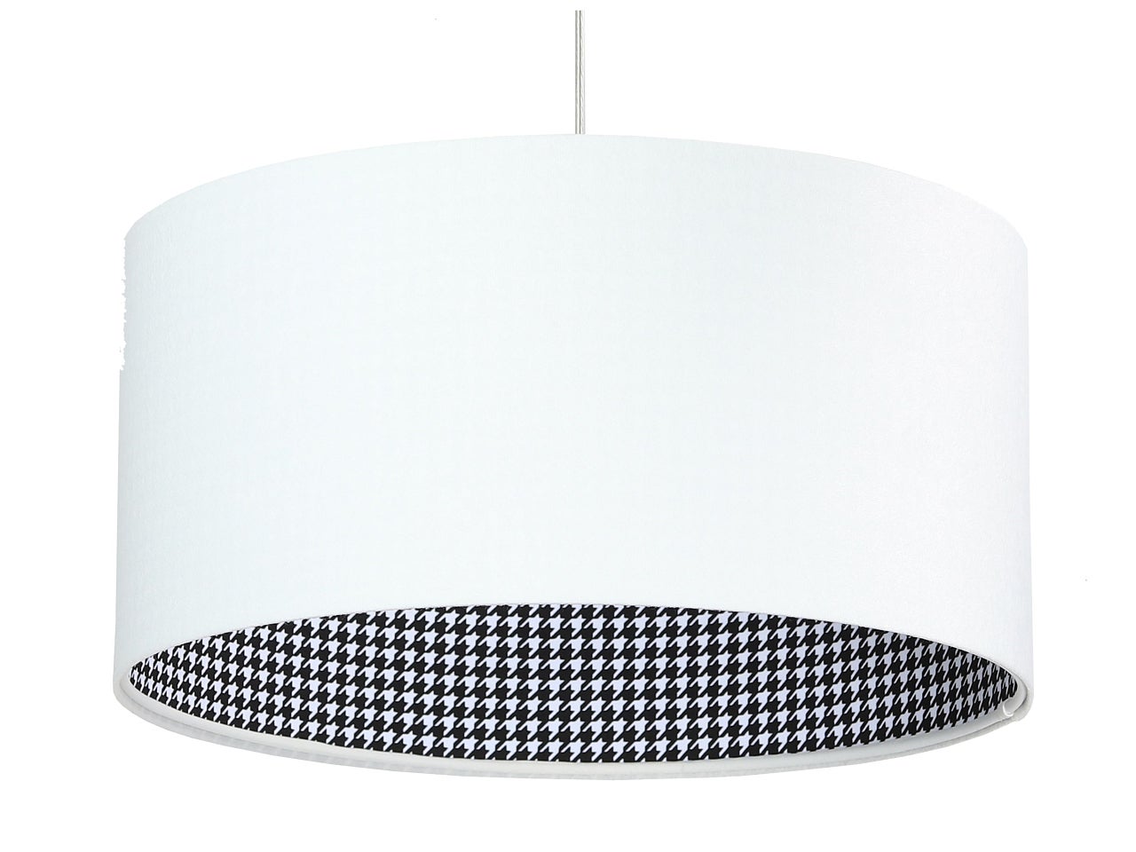 - wnętrze lampy pokryte tkaniną w czarno-białą pepitę,