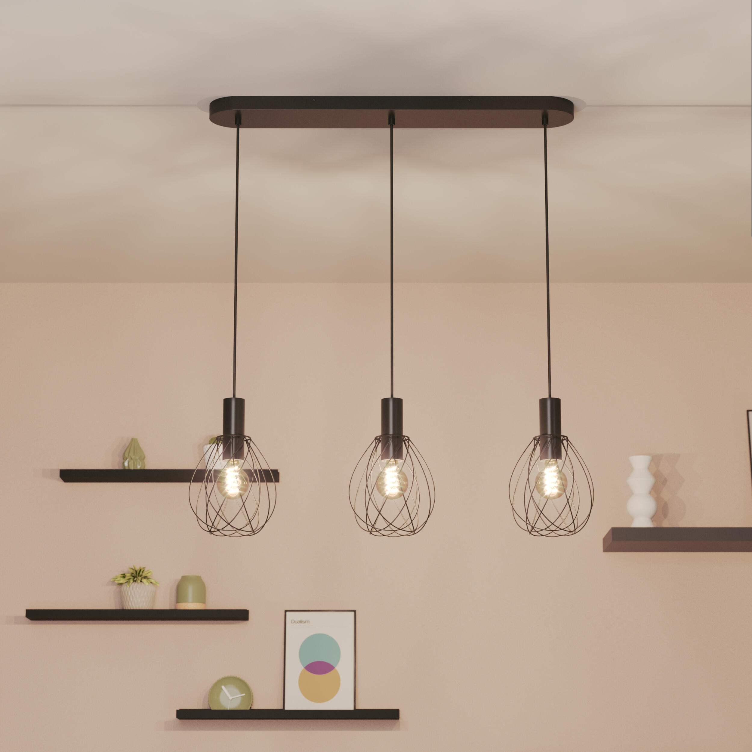 Queda genial, no hemos tenido que modificar el largo del cable porque queda perfecto y con bombillas decorativas como si fuesen las antiguas ya le da un toque espectacular.