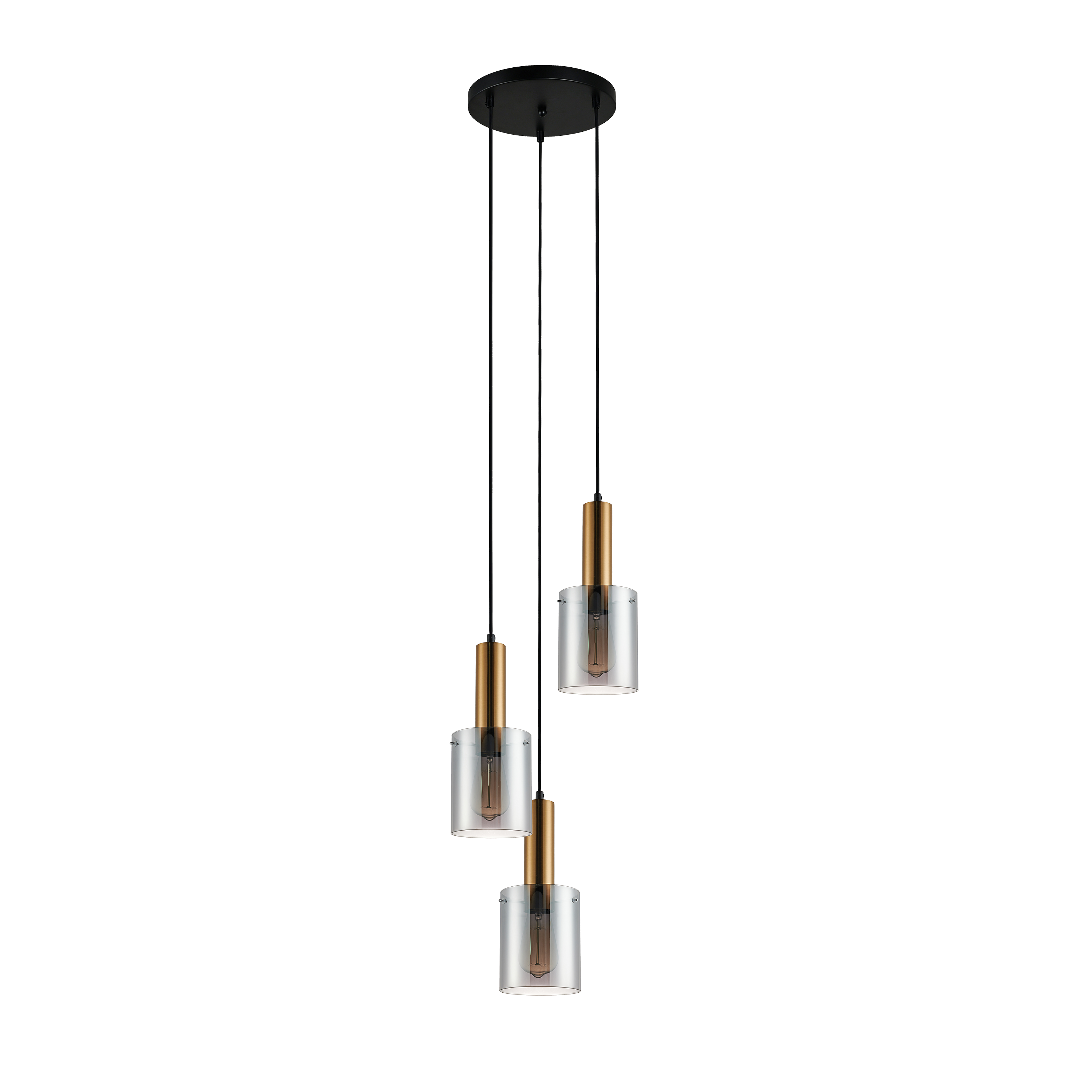 Wyjątkowa lampa wisząca Sardo Italux zachwyca swoim niezwykłym i oryginalnym designem. Połączenie mosiężnych dodatków, dymionych kloszy oraz czarnej podstawy tworzy niepowtarzalne oświetlenie, które wprowadzi poczucie estetyki i wysmakowania. 3 szklane klosze dostosowane do żarówek klasycznych lub LED zawieszone są na różnej wysokości, co pozwoliło stworzyć piękną i nowoczesną lampę. Lampa nie tylko oświetli salon, sypialnię, jadalnię czy gabinet, ale również stanie się ulubionym elementem wystroju wnętrza.