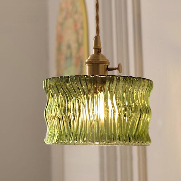 Lampa wisząca w stylu vintage – klosz ze szkła falistego Ø16 cm – nowoczesny styl nordycki – do przedpokoju (E27, regulowany 1,5 m, bez żarówki)