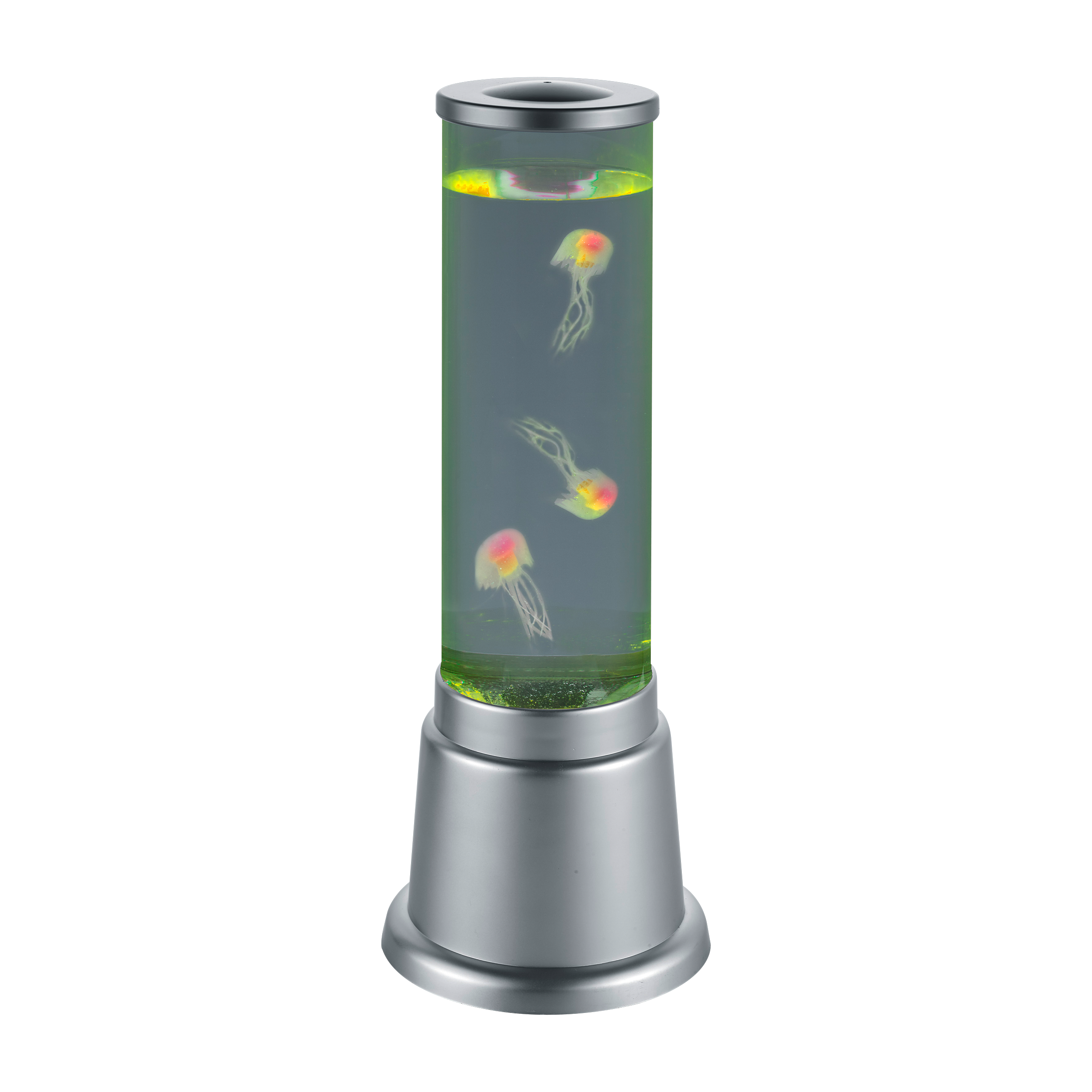 Kolumna wodna LED JELLY – wyposażenie i oświetlenie w jednym. Gdy tylko kolumna zostanie włączona, małe meduzy zaczynają się poruszać w przejrzystym płynie. Dzięki wbudowanemu zmieniaczowi kolorów RGB kolumna może przybierać różne cechy kolorów i wyczarować grę światła w Twoim salonie. Słup wody jest osadzony na plastikowej podstawie w kolorze tytanu, ma wysokość 36 cm i średnicę 12,5 cm.