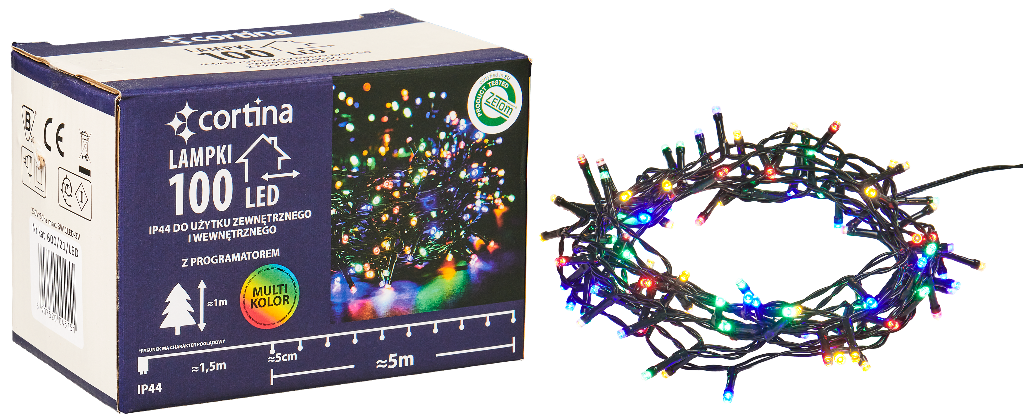 Lampki choinkowe zewnętrzne 100 LED 8 funkcji programator multikolor Cortina