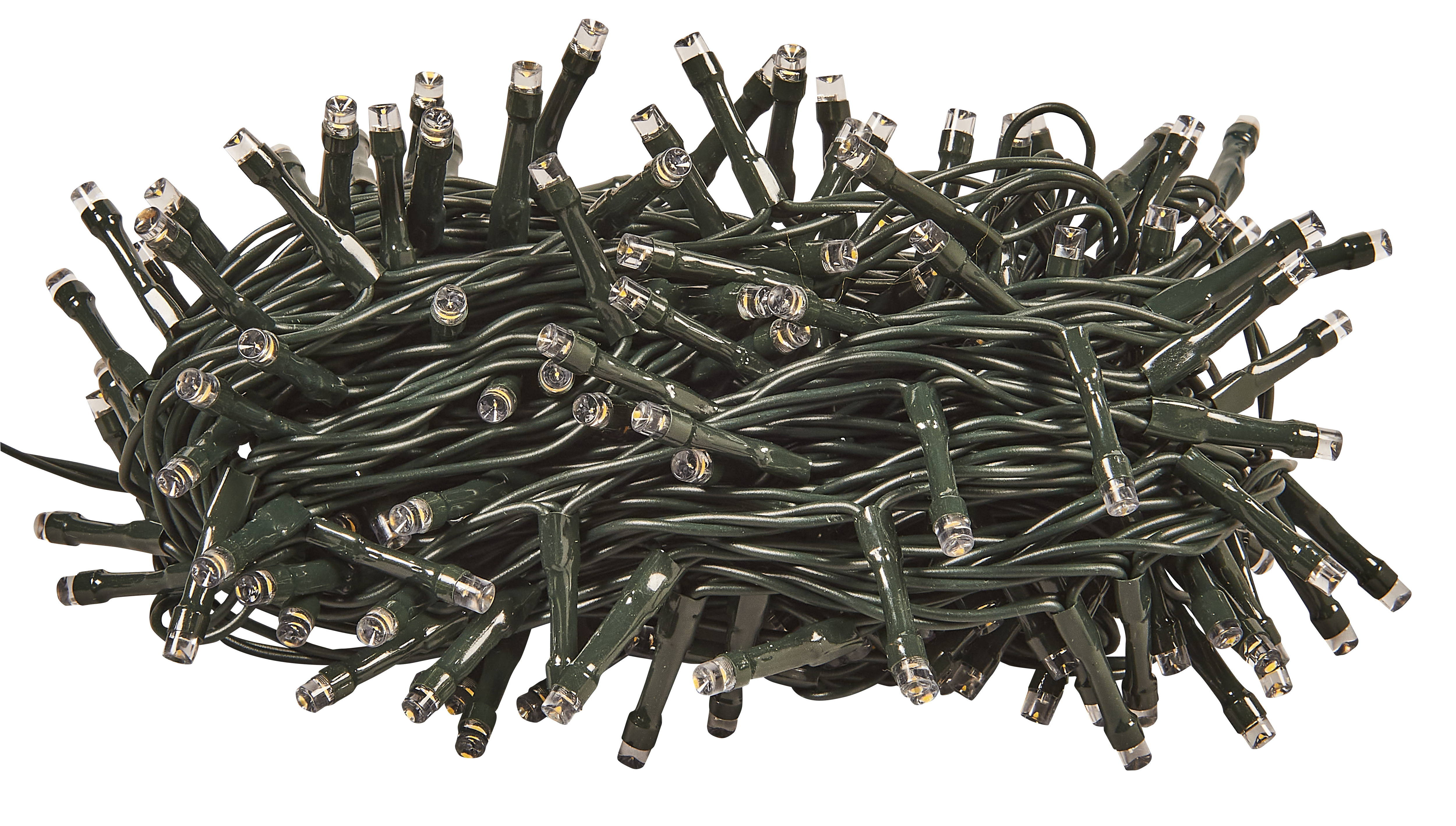 Lampki choinkowe do stosowania wewnątrz pomieszczeń oraz na zewnątrz, wyposażone w 200 diod LED. Ciepła barwa lampek subtelnie oświetla choinkę, co pięknie komponuje się z tradycyjnymi ozdobami. Lampki posiadają zielony przewód, dzięki czemu jest mało widoczny na tle zielonych gałązek.