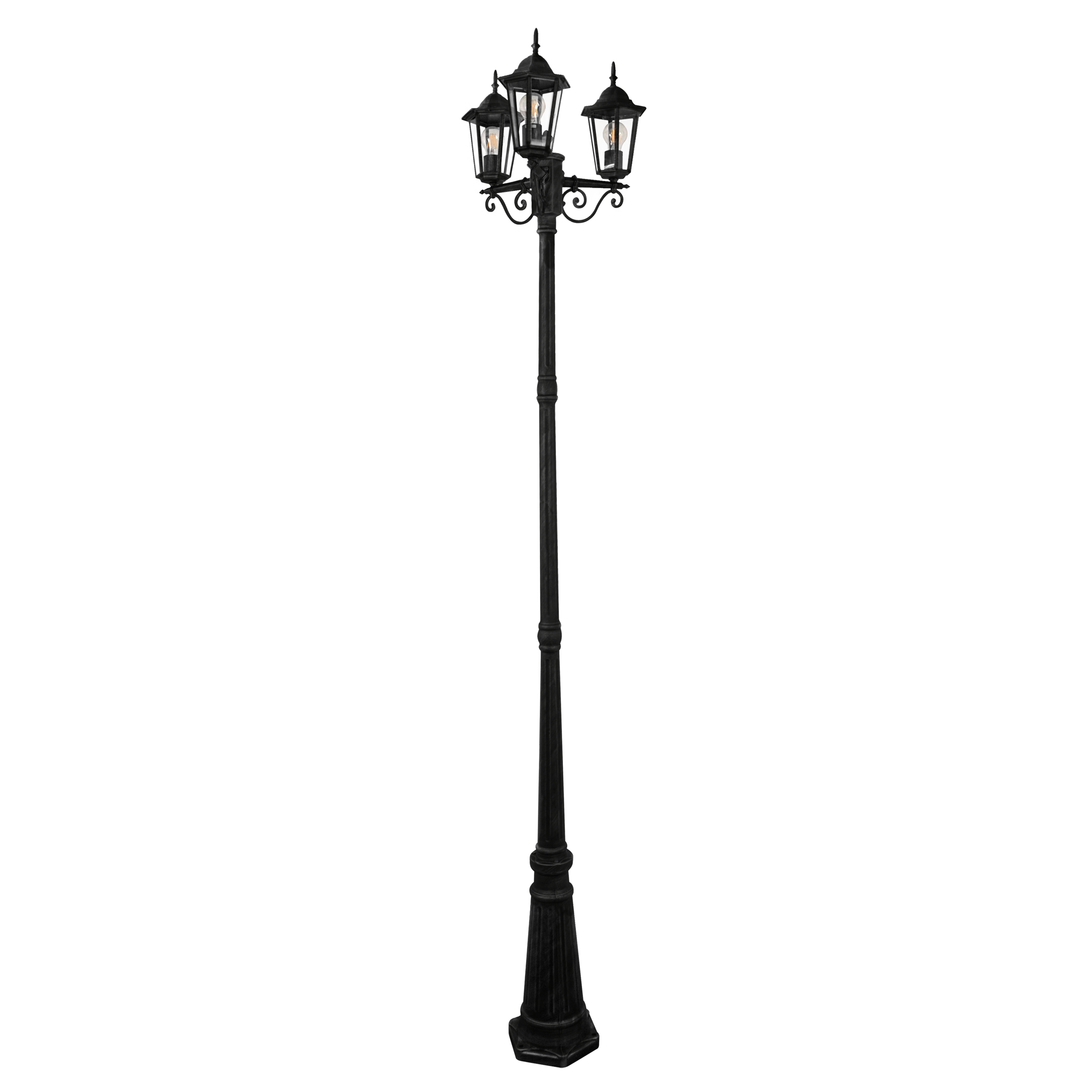 Lampa ogrodowa LIGURIA czarna o wysokości 250cm. 3xE27 max 20W LED IP43. Klasyczna dekoracyjna lampa wykonana z aluminium z trzema kloszami. Lampy nadają się do oświetlenia ogrodów, ścieżek, werand.