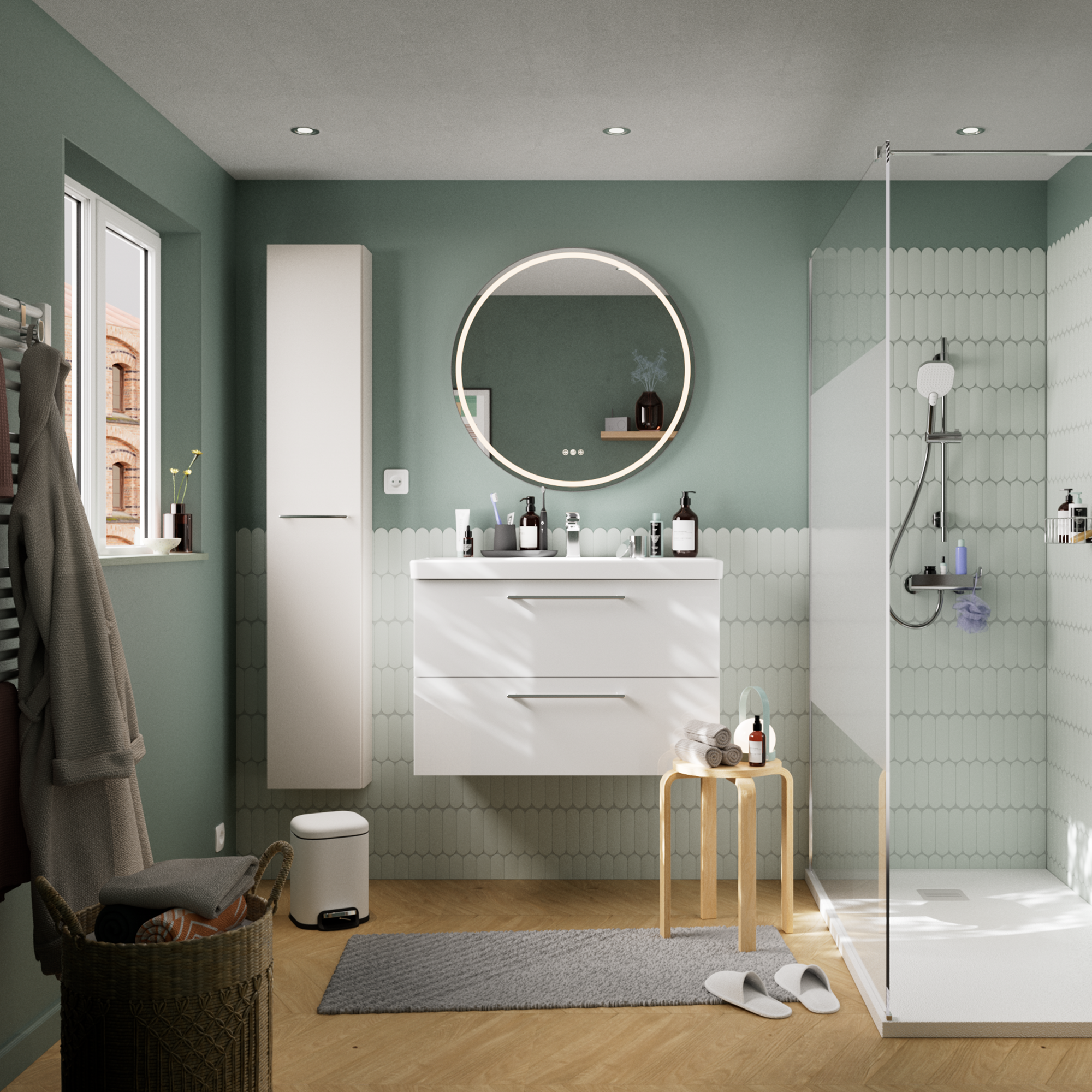 Łazienka, w której wypoczniesz jak w domowym SPA to nie marzenie, a rzeczywistość. Zaprojektujemy ją dla Ciebie nawet w 2 godziny z produktów i materiałów które trafią prosto w Twój gust. Nasi projektanci czekają na Ciebie w sklepach stacjonarnych – żeby komfortem rozpieszczał Cię zarówno efekt realizacji, jak i sam projekt.