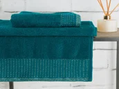 - bambusem – ma on m.in. właściwości antybiotyczne, dzięki czemu ryzyko rozwoju różnego rodzaju patogenów jest zminimalizowane, co też przekłada się np. na niewydzielanie nieprzyjemnego zapachu; ręczniki bambusowe poleca się alergikom oraz osobom ze skłonnością do powstawania atopowych zmian skórnych.