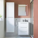 Wysokość szafki łazienkowej ma szczególne znaczenie wtedy, gdy montuje się ją pod umywalką. Zasady ergonomiimówią, że wysokość mierzona od posadzki do krawędzi umywalki powinna wynosić od 75 do 80 cm wysokości. Należy ją jednak dobrać indywidualnie do wzrostu domowników.