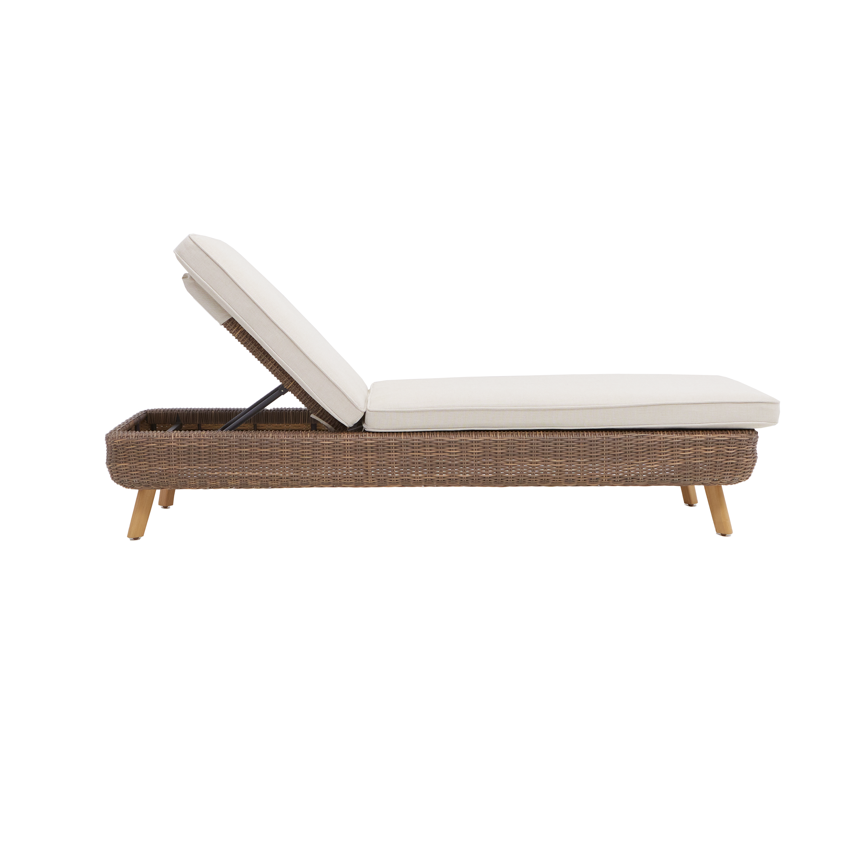 Skorzystaj z chwili przerwy na czytanie w spokoju na leżaku Nerea. Chwila relaksu i komfortu na świeżym powietrzu. Wykorzystaj zasłużoną przerwę na leżaku Nerea. Zaprojektowany dla optymalnego komfortu, leżak z syntetycznego wiklinowego plecionego materiału i grubej poduszki pozwoli Ci cieszyć się słońcem przy każdej okazji. Jego poduszka, wykonana z poliestru, jest traktowana środkiem przeciwsłonecznym i wodoodpornym, co opóźnia jej przebarwienie i pozwala natychmiast usunąć przypadkowe plamy. Leżak przeznaczony także do użytku profesjonalnego, może być stosowany na tarasach hotelowych lub kawiarnianych. Klasyczny i naturalny styl. Leżak Nerea łączy syntetyczną wiklinę z aluminiową strukturą imitującą drewno, tworząc harmonijną mieszankę stylu i wytrzymałości. Syntetyczna wiklina, łatwa w utrzymaniu, oferuje wygląd naturalnego rattanu bez konieczności konserwacji i współgra z jasnymi poduszkami, tworząc miękką i elegancką aranżację. Połącz ten leżak z resztą kolekcji Nerea, aby stworzyć harmonijną strefę relaksu na tarasie. Wytrzymały i łatwy w utrzymaniu. Syntetyczna wiklina leżaka jest odporna na warunki atmosferyczne i nie wymaga konserwacji. Jego poduszka ma wodoodporny, zdejmowany pokrowiec, który można prać w pralce, co ułatwia utrzymanie czystości. Aby zachować jakość mebli, przykryj je ochronnym pokrowcem zimą i przechowuj poduszkę w suchym miejscu. Dostępne są części zamienne, które przedłużają żywotność Twoich mebli.