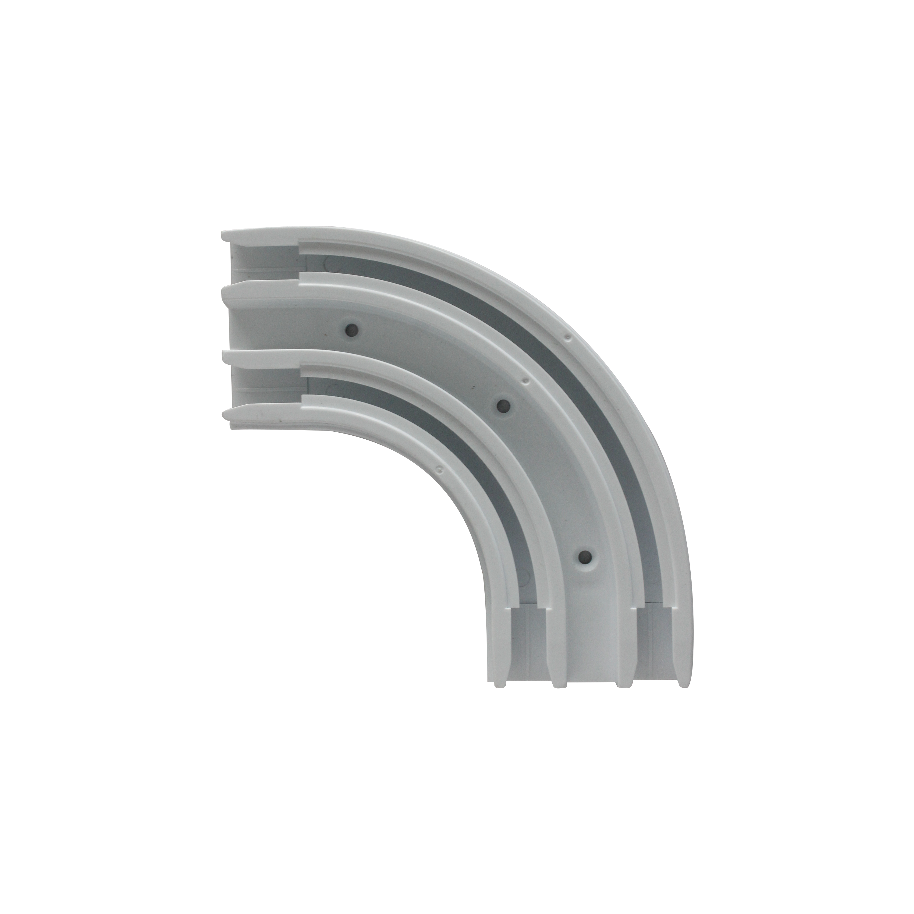 Łuk narożny Inspire do podwójnej szyny Magleva to sprytne rozwiązanie, które pozwala estetycznie i trwale połączyć szyny karnisza w rogach pomieszczeń. Dzięki niemu łatwo zamontujesz karnisz, nawet jeśli wymaga on łączenia w narożach. Zapewnia płynne przesuwanie zasłon i pozwala na tworzenie różnych aranżacji – od prostego wydzielenia przestrzeni po budowę garderoby. Wykonany z solidnego, białego tworzywa PVC, jest odporny na uszkodzenia i objęty 5-letnią gwarancją
