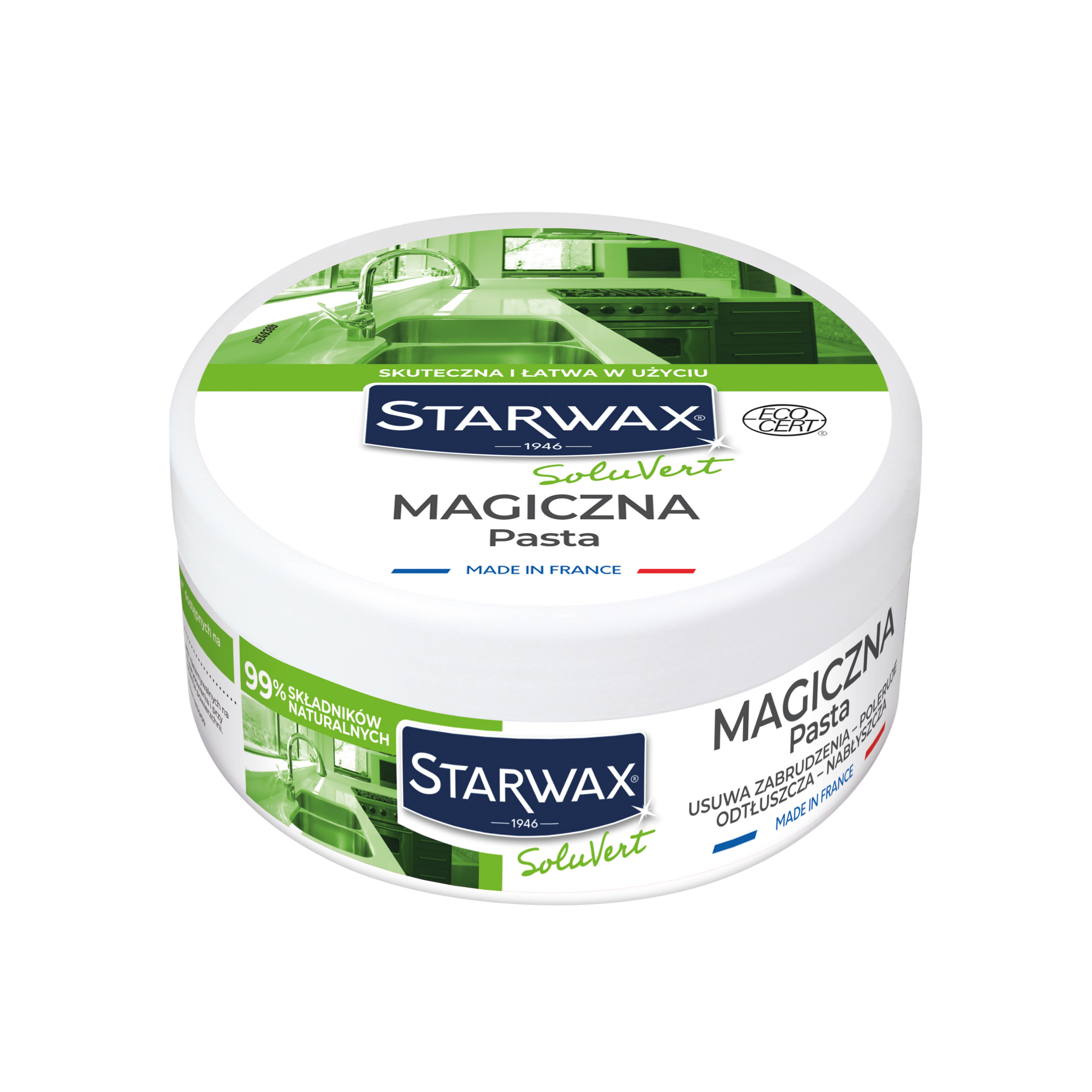 Naprawdę magiczna pasta, która szybko i skutecznie czyści, odtłuszcza, usuwa osady, przypalenia i naloty oraz tworzy ochronny film na czyszczonej powierzchni. Do wnętrz i na zewnątrz. Do różnego typu powierzchni, również mających bezpośredni kontakt z żywnością. Niezastąpiona w domu, ogrodzie, warsztacie, na działce i na campingu.