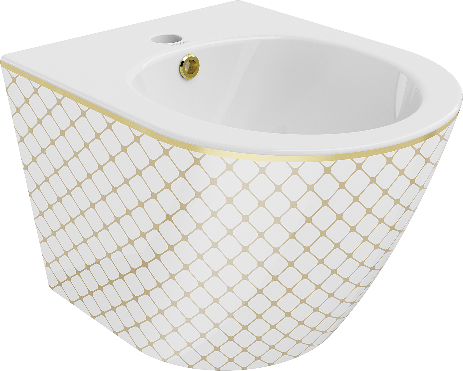 Mexen Lena bidet wiszący, biały/złoty wzór kratka - 35224809
