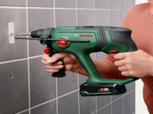 Młot udarowy obrotowy akumulatorowy Wytrzymały i mobilny młot udarowy akumulatorowy zapewnia efektywne wiercenie i dłutowanie bez ograniczeń kabli.