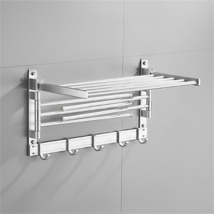 Obrotowy składany wieszak na ręczniki bez wiercenia, półka na ręczniki łazienkowe, srebrny, 50×25,5×29 cm