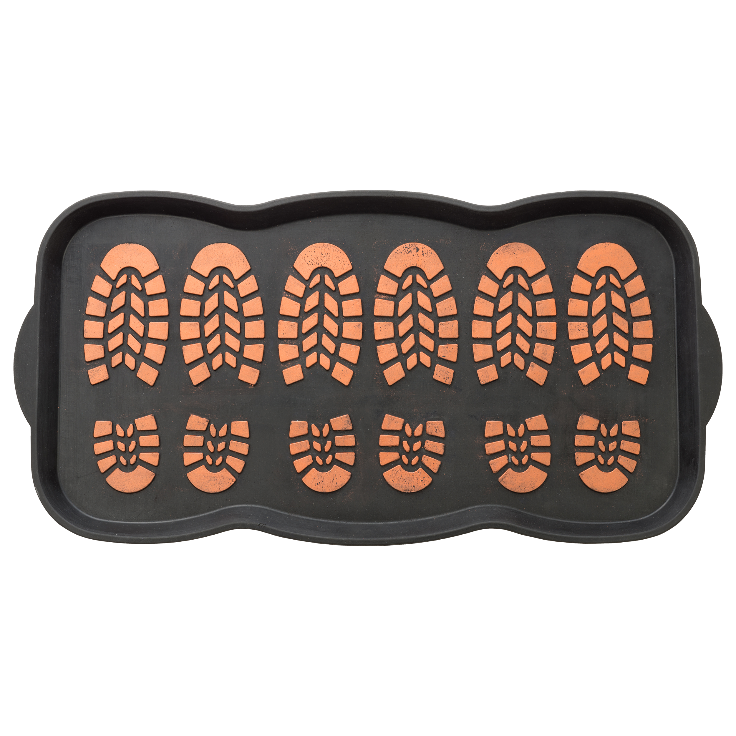 Ociekacz na buty w wymiarze 80 x 40 centymetrów. Wykonany jest z tworzywa sztucznego. Wysokie krawędzie zabezpieczają podłogę przed naciekami z piasku i wody. Strukturalna powierzchnia ułatwia oczyszczenie butów.
