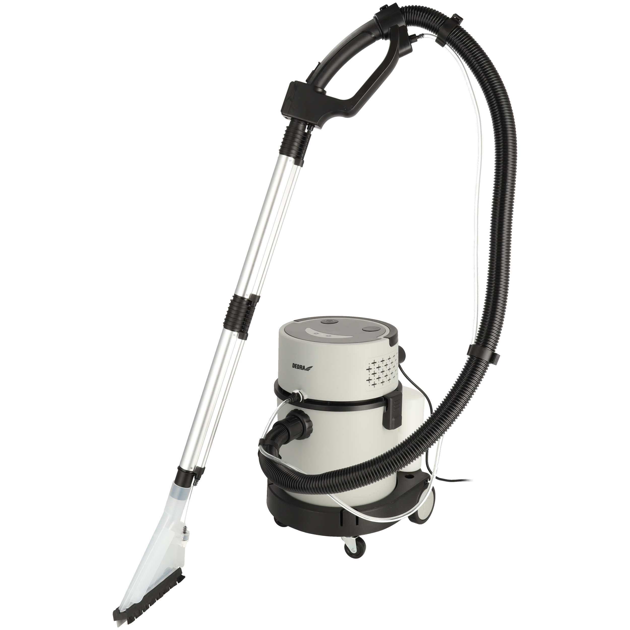Odkurzacz piorący DEDRA DED6605, wyposażony w innowacyjny zdalny system natryskowy i próżniowy, jest idealnym narzędziem do skutecznego i wygodnego sprzątania. Urządzenie posiada dwa tryby pracy: w pierwszym odkurzacz przeznaczony jest do czyszczenia na mokro i na sucho twardych powierzchni takich jak podłogi, w drugim funkcja odkurzacza piorącego umożliwia czyszczenie dywanów czy tapicerek na mokro i na sucho. To sprawia, iż odkurzacz jest wielofunkcyjny i nadaje się do wielu zadań. Pojemny [20 litrowy] i wytrzymały zbiornik z tworzywa sztucznego, w który wyposażony został odkurzacz daje pewność, iż niezależnie od wielkości powierzchni do sprzątania, pomieści on dużą ilość brudu i wody, a co za tym idzie pozwoli skupić się na pracy bez potrzeby częstego opróżniania. Odkurzacz wyposażony został w dwa duże tylne koła, które zapewniają stabilność i płynność ruchu, oraz dwa mocne koła skrętne o uniwersalnym zastosowaniu, umożliwiające łatwe manewrowanie wokół mebli oraz w trudno dostępnych miejscach.