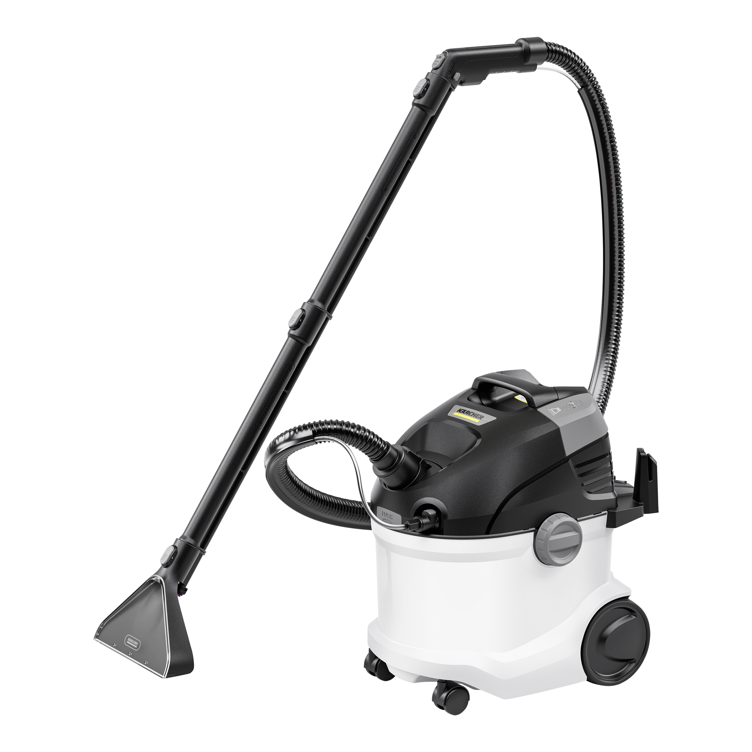 Głębokie czyszczenie w połączeniu z ergonomiczną konstrukcją i wielofunkcyjnością: odkurzacz piorący SE 5 o atrakcyjnym designie zapewnia higieniczne czyszczenie wielu powierzchni tekstylnych, takich jak wykładziny podłogowe, tapicerka i meble tapicerowane, dywaniki, schody pokryte wykładziną, materace, gobeliny i fotele samochodowe. Sprawdzona technologia spryskująco-odsysająca Kärcher zapewnia najlepsze efekty czyszczenia: świeża woda z kranu i środek do czyszczenia dywanów Kärcher RM 519 są rozpylane pod ciśnieniem w głąb włókien tekstylnych, a następnie odkurzane z powrotem wraz z rozluźnionym brudem – idealne rozwiązanie dla rodzin, alergików i gospodarstw domowych ze zwierzętami. SE 5 to wielofunkcyjny produkt 3 w 1, którego dzięki szerokiej gamie akcesoriów można również używać jako pełnoprawny odkurzacz uniwersalny. Inne funkcje wyposażenia: System 2-zbiornikowy z wyjmowanym zbiornikiem na świeżą i zanieczyszczoną wodę, ergonomiczny uchwyt do przenoszenia ułatwiający transport i praktyczny schowek na akcesoria na urządzeniu. Po użyciu urządzenie można łatwo wyczyścić, co zapewnia jego długą żywotność.