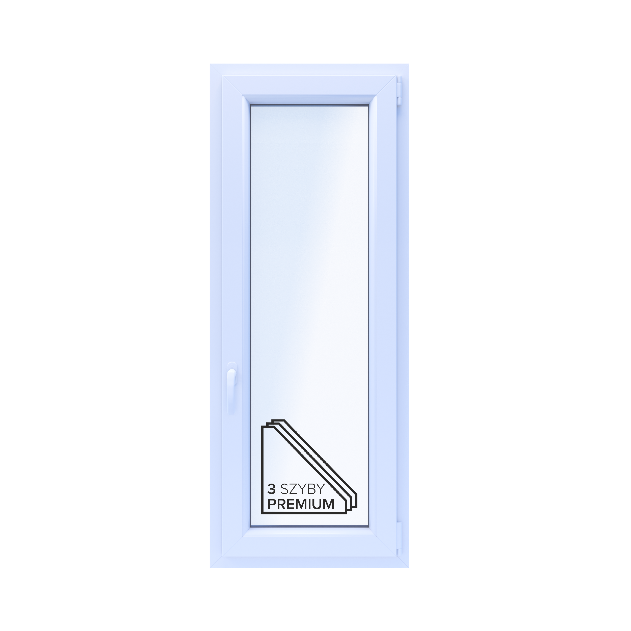 Okno PCV 3-szybowe fasadowe 85/O26 białe 565x1435 mm otwierane do wewnątrz prawe Witraż