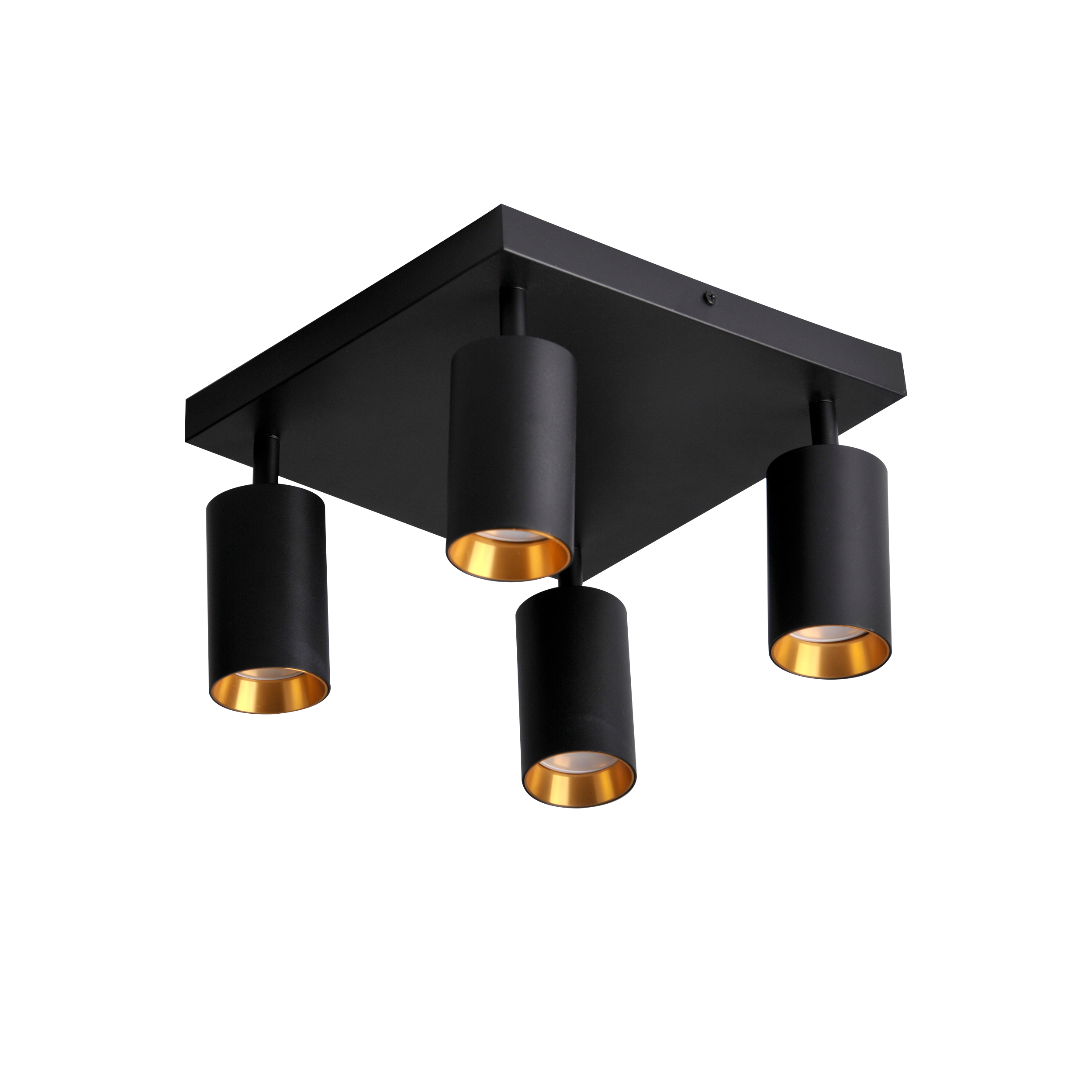 Plafon sufitowy MARIBEL w kolorze czarnym ze złotą obręczą lub czarną w zestawie. Wymienne źródło światła, żarówka z gwintem GU10, zalecany led max 10Wx4.