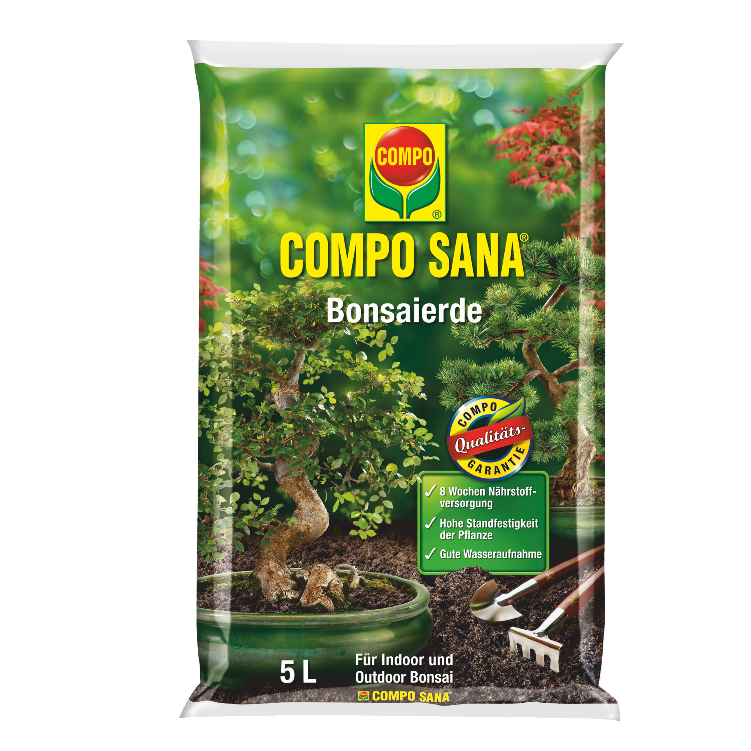 Najwyższej jakości, specjalistyczne, idealnie skomponowane podłoże do sadzenia wszystkich odmian drzewek bonsai uprawianych w domu i w ogrodzie. Ekskluzywna receptura oparta na wyselekcjonowanych frakcjach torfu, zawiera dodatki uszlachetniające, które pozytywnie wpływają na rozwój twoich roślin: Startowa dawka nawozu zapewnia dostęp do składników pokarmowych aż przez 8 tygodni od posadzenia rośliny. Naturalna glinka posiada zdolność magazynowania i stopniowego uwalniania składników pokarmowych, zwiększając jednocześnie stabilność podłoża. Wysokiej jakości piasek kwarcowy gwarantuje stabilność rośliny oraz optymalne rozprowadzanie wody w podłożu.