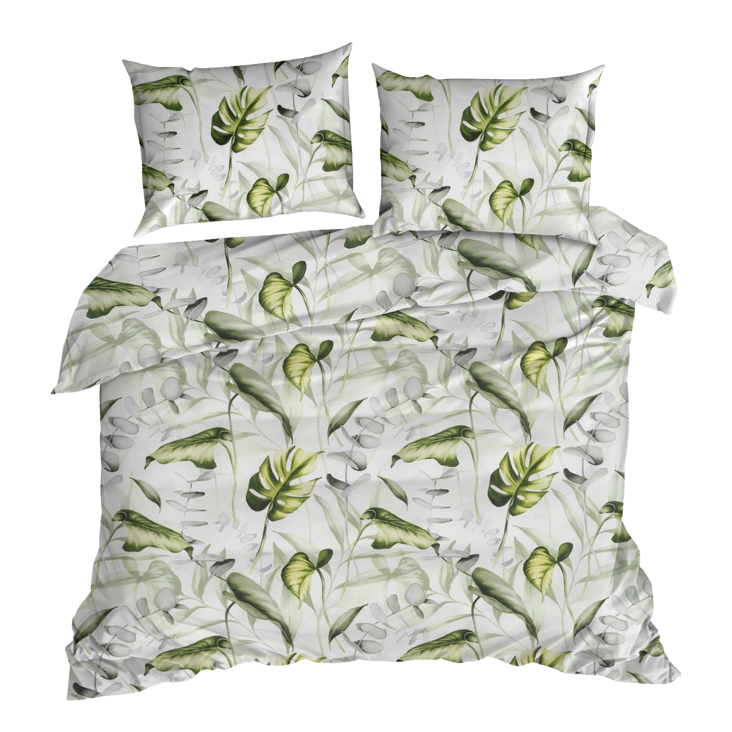 Pościel 220x200 cm Ellen Monstera bawełna zielono-biała