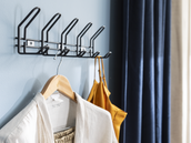 Wieszaki mocowane na kołki rozporowe utrzymają nawet kilkanaście sztuk odzieży. Mniejszy udźwig mają haczyki samoprzylepne. Alternatywą są wieszaki nakładane na fronty szaf i regałów.