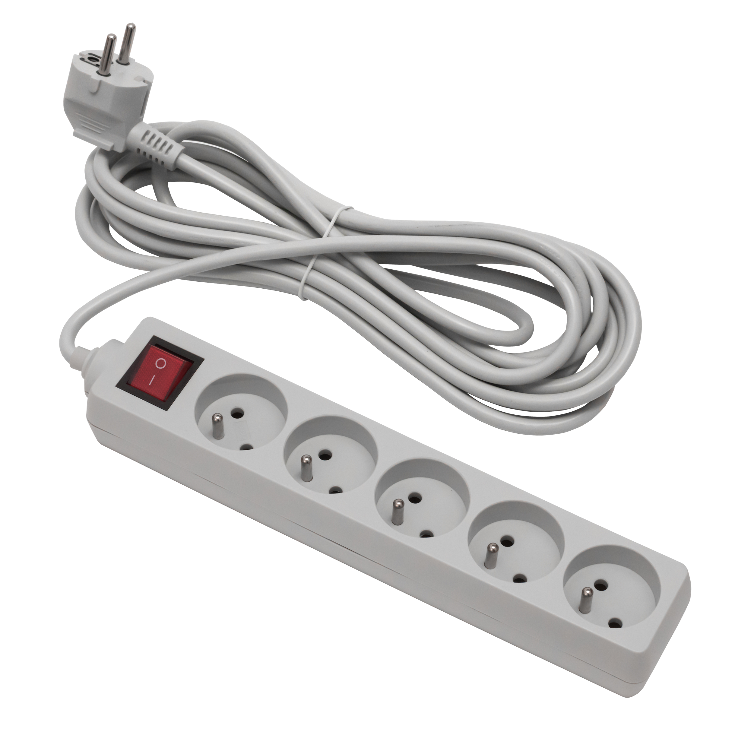 Przedłużacz z 5 gniazdami z uziemieniem z wyłącznikiem 5 m biały domowy ELGOTECH