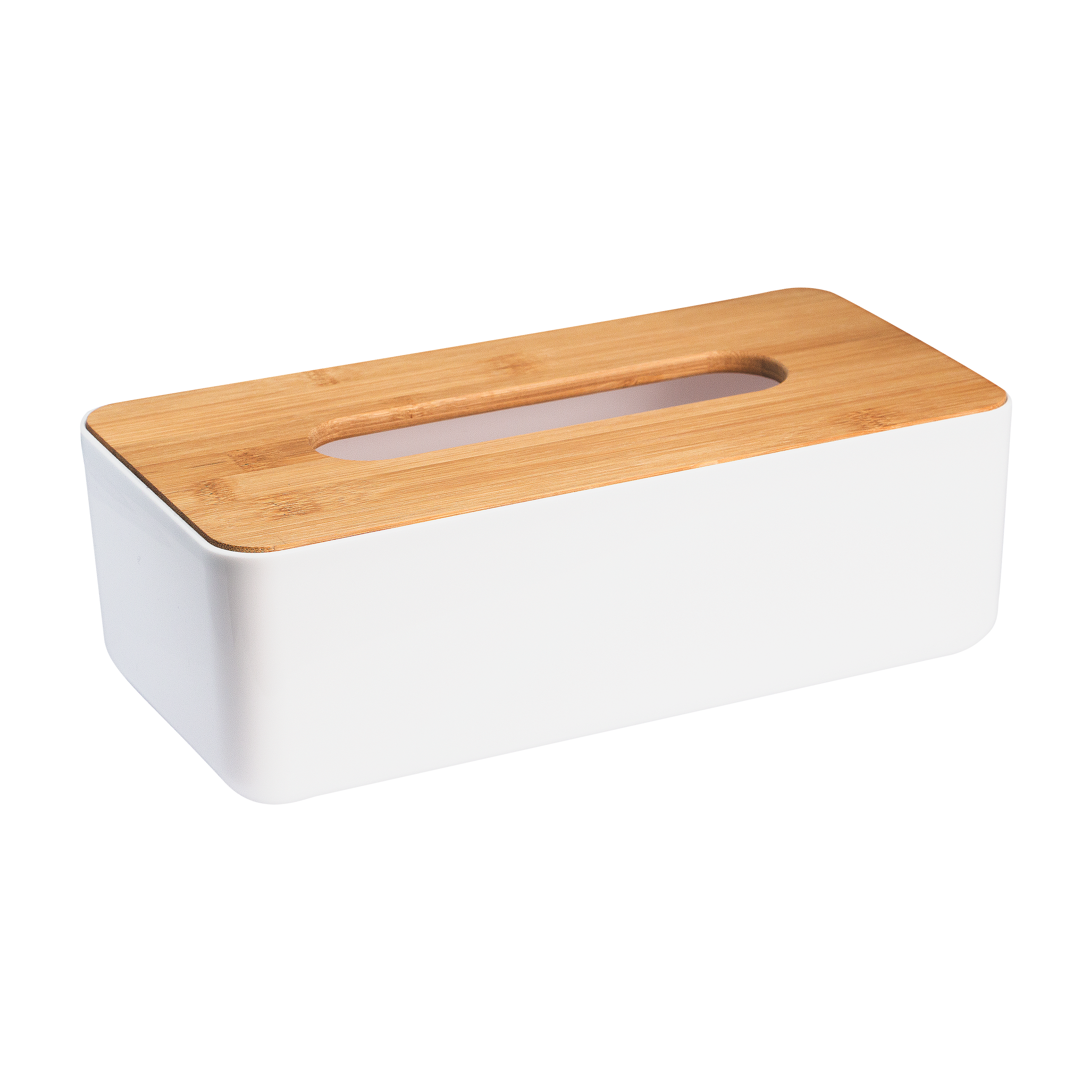 Pojemnik na chusteczki wykonany z tworzywa z bambusową pokrywką to estetyczny sposób na przechowywanie chusteczek jednorazowych. Wystarczy umieścić kartonowe opakowanie wewnątrz pudełka, a chusteczki wyciągać przez otwór w pokrywce. Dzięki użytym materiałom, pudełko jest wodoodporne i łatwo można je czyścić.