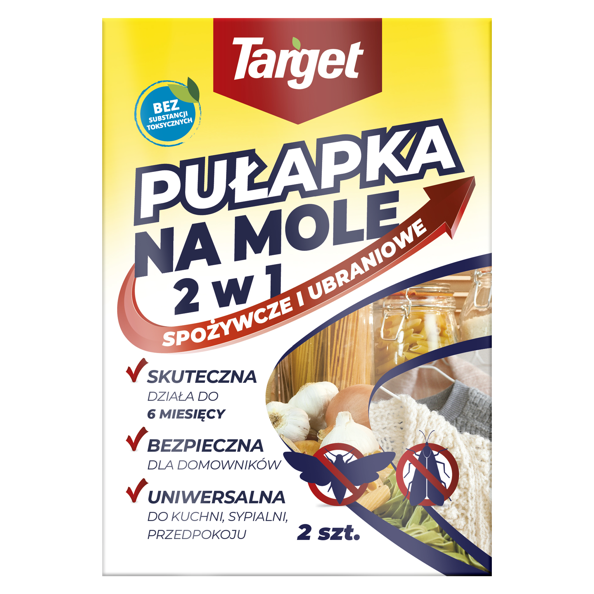 Pułapka na mole spożywcze Target to skuteczne rozwiązanie do zwalczania moli w pomieszczeniach. Przeznaczona do stosowania wewnętrznego, działa poprzez uwięzienie pasożytów, skutecznie eliminując problem. Produkt biobójczy wymaga zachowania szczególnych środków ostrożności; przed użyciem należy zapoznać się z etykietą i ulotką informacyjną. Pułapka nie jest bezpieczna dla dzieci i zwierząt domowych, dlatego należy stosować ją ostrożnie. Opakowanie zawiera 2 sztuki pułapek, idealnych do zwalczania moli spożywczych w różnych częściach domu.