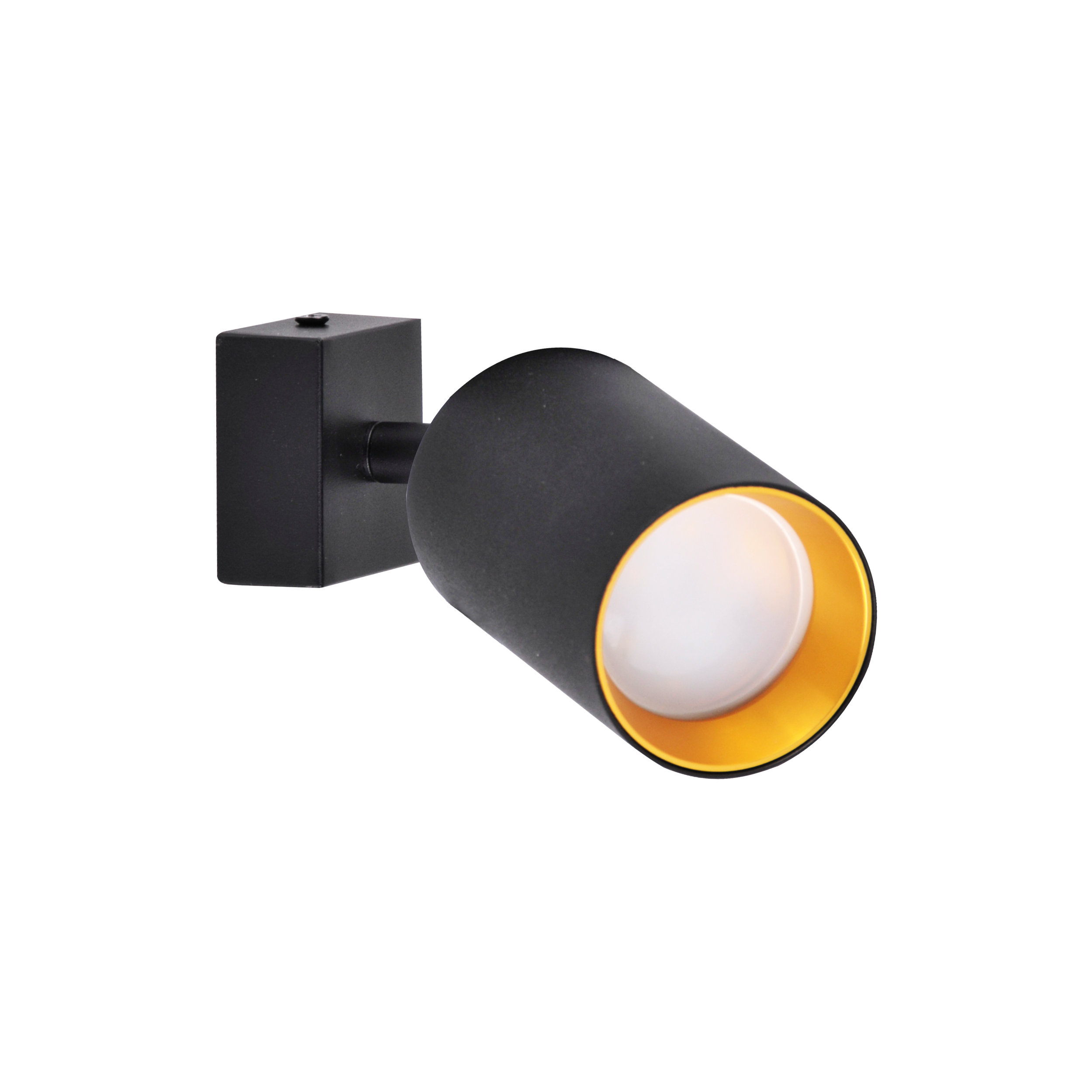 Lampa ścienno-sufitowa MARIBEL w kolorze czarnym ze złotą obręczą lub czarną w zestawie. Wymienne źródło światła, żarówka z gwintem GU10, zalecany led max 10W.