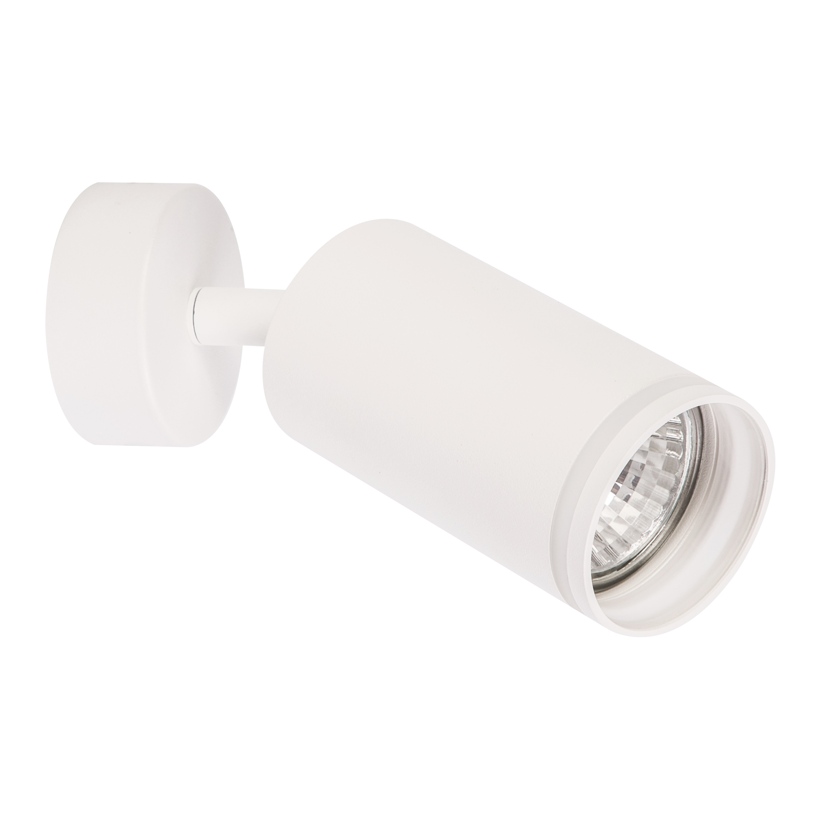 Oprawa do zamontowania na ścianie lub suficie z jedną ruchomą główką w kolorze białym. Jest to pojedynczy reflektor, który świetnie współgra z pomieszczeniem jak: sypialnia, przedpokój, kuchnia, jadalnia czy salon nadając wyjątkowego charakteru i klasy. Mocowanie umożliwia ustawienia światła w dowolnym kierunku. Źródło światła stanowi jedna wymienna żarówka o max mocy 10W LED na gwint GU10. Oprawa sprzedawana jest bez źródła światła w komplecie.