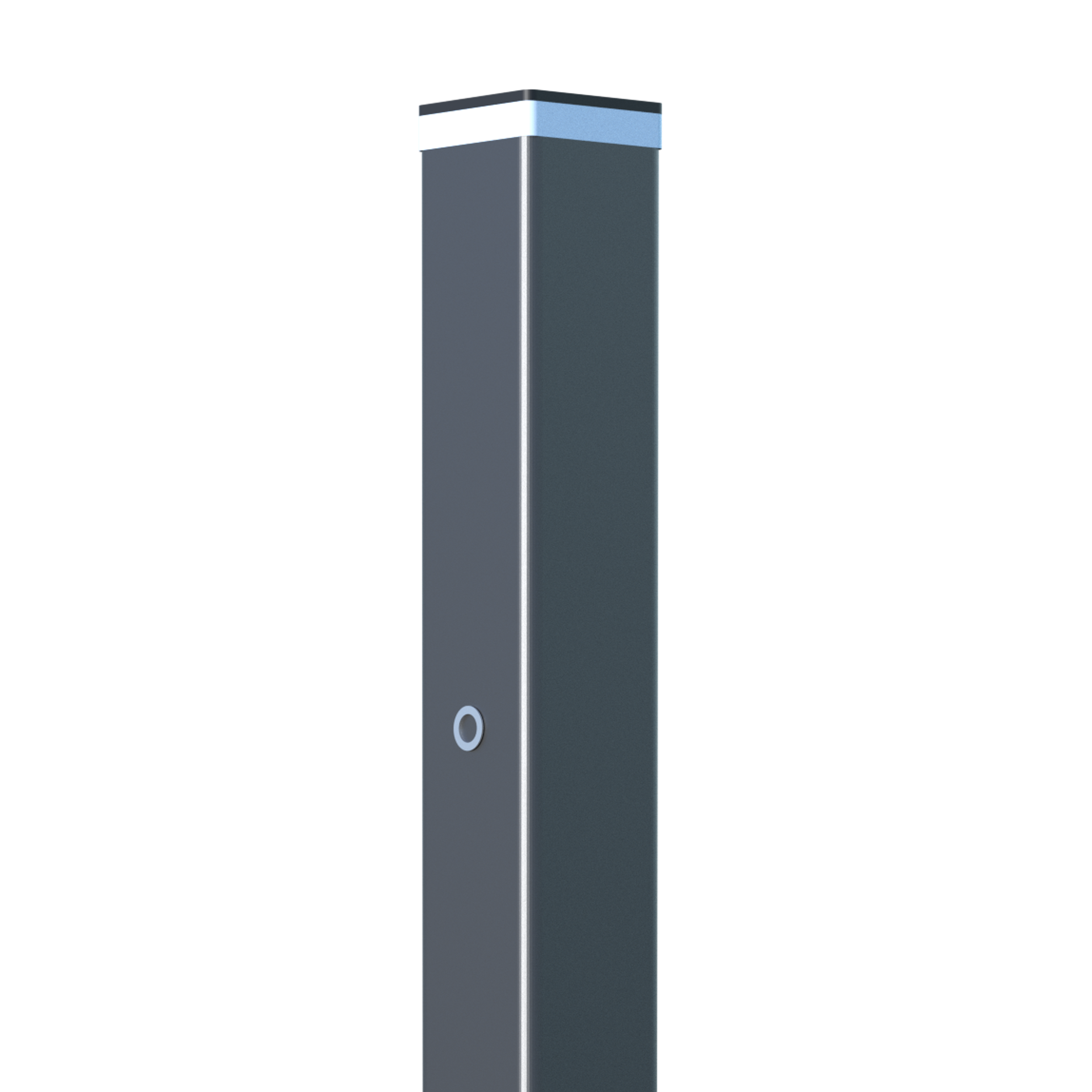 Słupek z wbudowaną lampką LED, która posiada dwie główne funkcje: pomarańczowe światło ostrzegawcze, sygnalizujące automatyczne otwieranie i zamykanie bramy oraz światło białe, oświetlające podjazd. Słupek jest zabezpieczony antykorozyjnie, dzięki czemu jest odporny na niekorzystne warunki atmosferyczne.