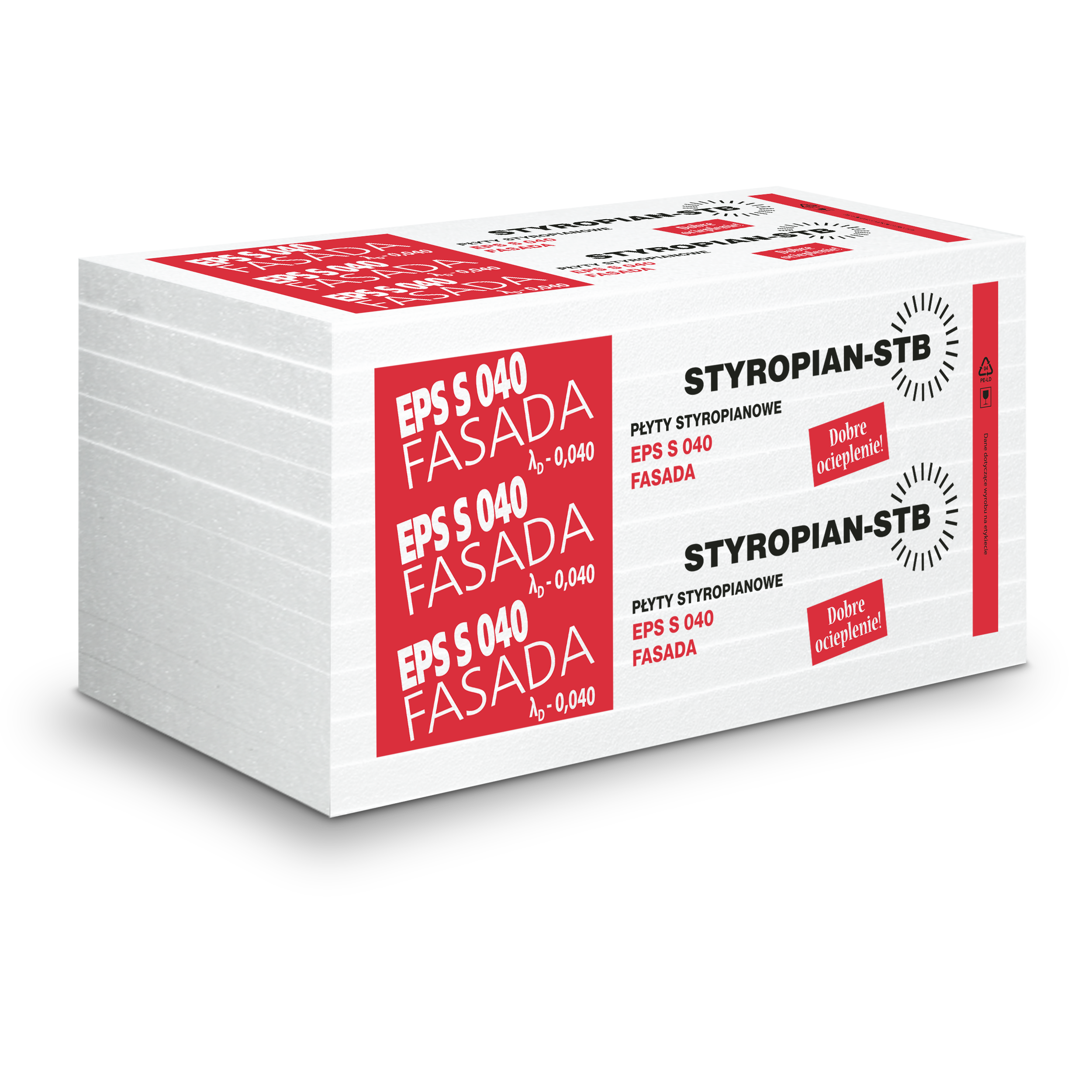 Płyty styropianowe EPS S 040 FASADA 150 mm przeznaczone do ocieplania ścian zewnętrznych budynków metodą BSO - spełniające wymagania Bez spoinowych Systemów Ociepleń w zakresie izolacyjności termicznej i obciążeń mechanicznych na fasadę. Deklarowany współczynnik przewodzenia ciepła 0,040 W/m K.