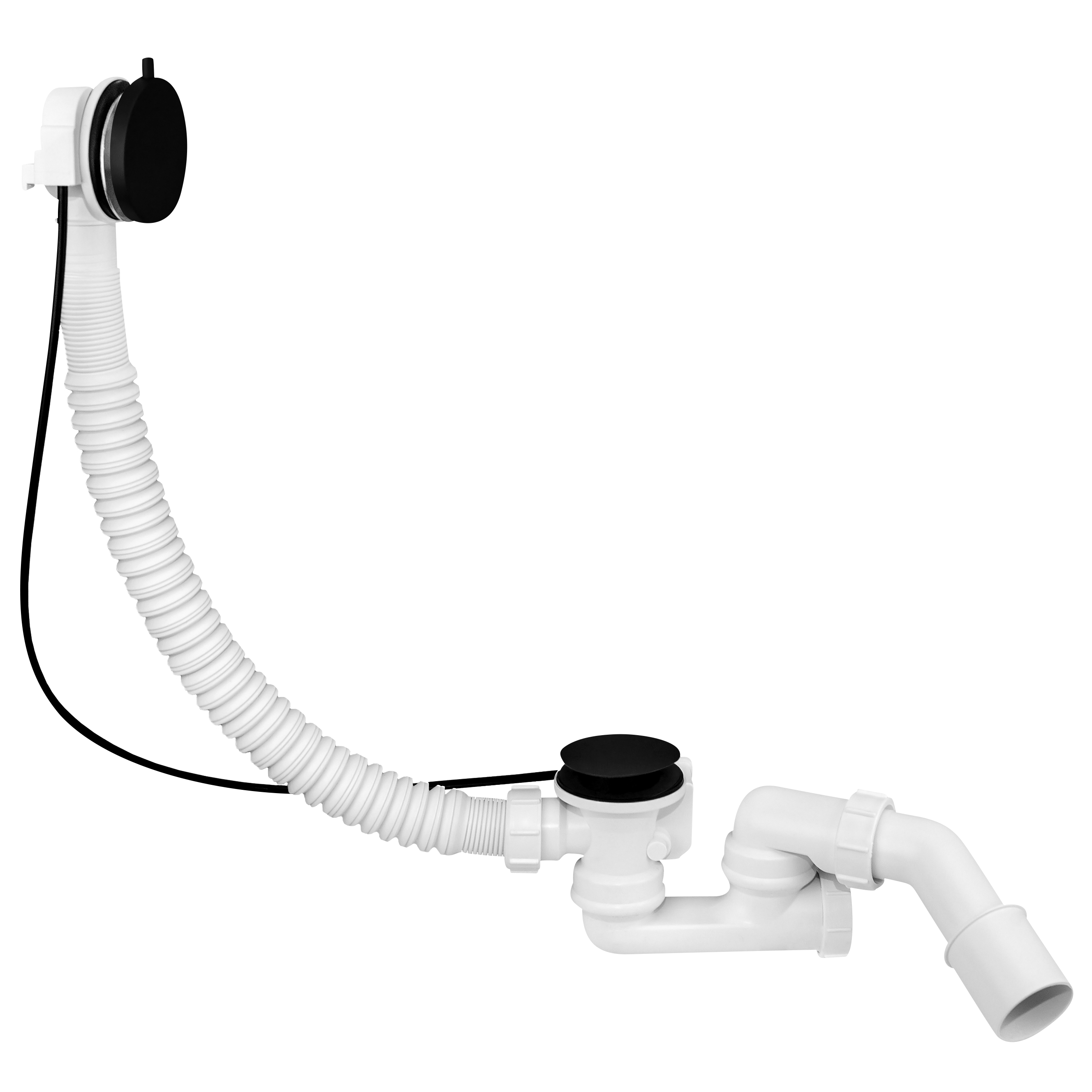 Syfon wannowy automatyczny, z korkiem mosiężnym, kolor CZARNY MAT. Nowoczesny design.