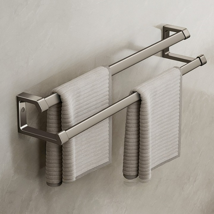 Szary wieszak ścienny na ręczniki 60 cm, wieszak łazienkowy na ręczniki, podwójny drążek, uchwyt ścienny bez wiercenia, aluminiowy wieszak na ręczniki