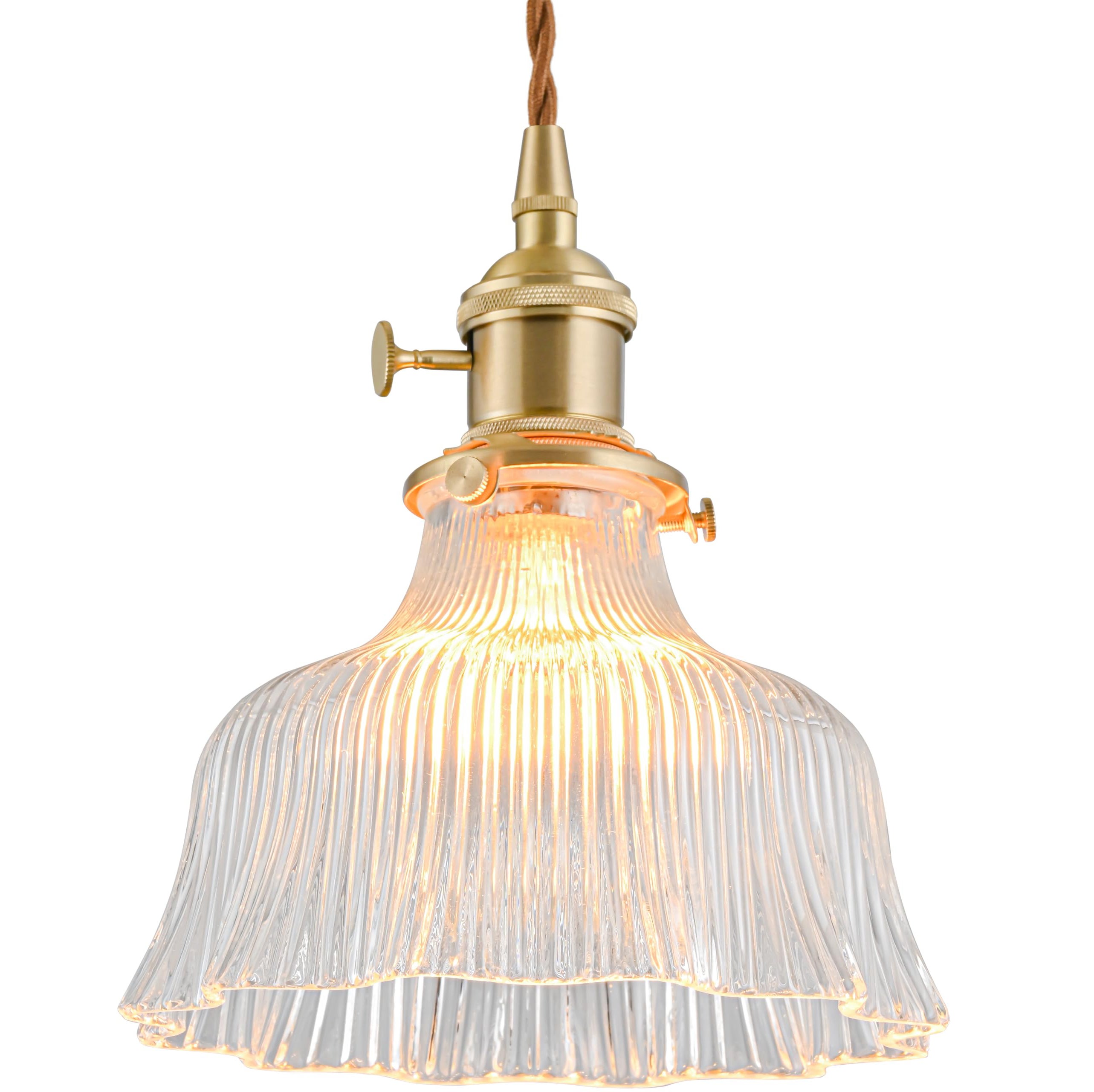 Szklany żyrandol do sypialni w stylu retro z kloszem, 18 x 20 cm, przezroczysty, 220 V, oprawka E27 (brak w zestawie), podstawa 12 cm