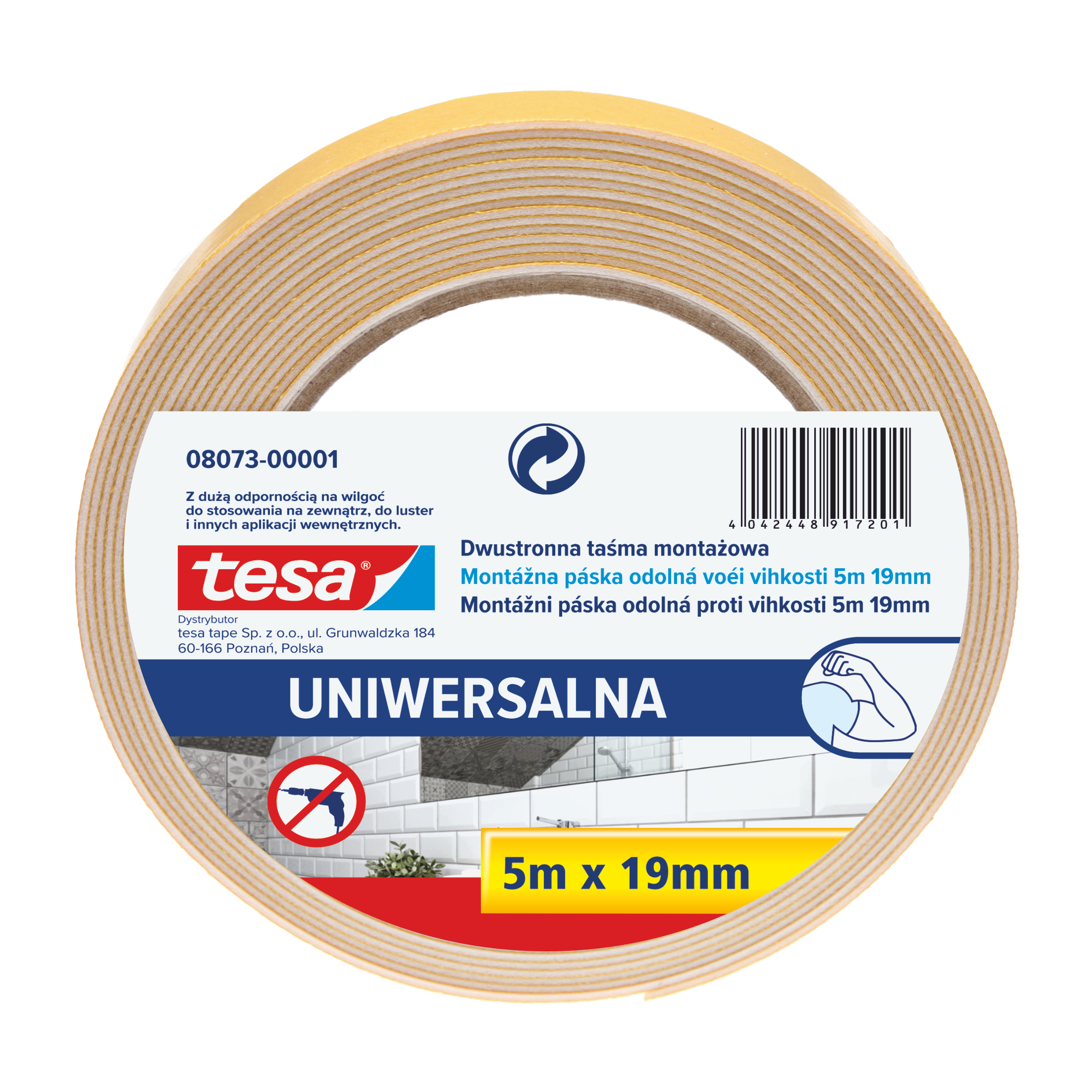 Taśma klejąca dwustronna piankowa 5 m x 19 mm odporna na wilgoć TESA