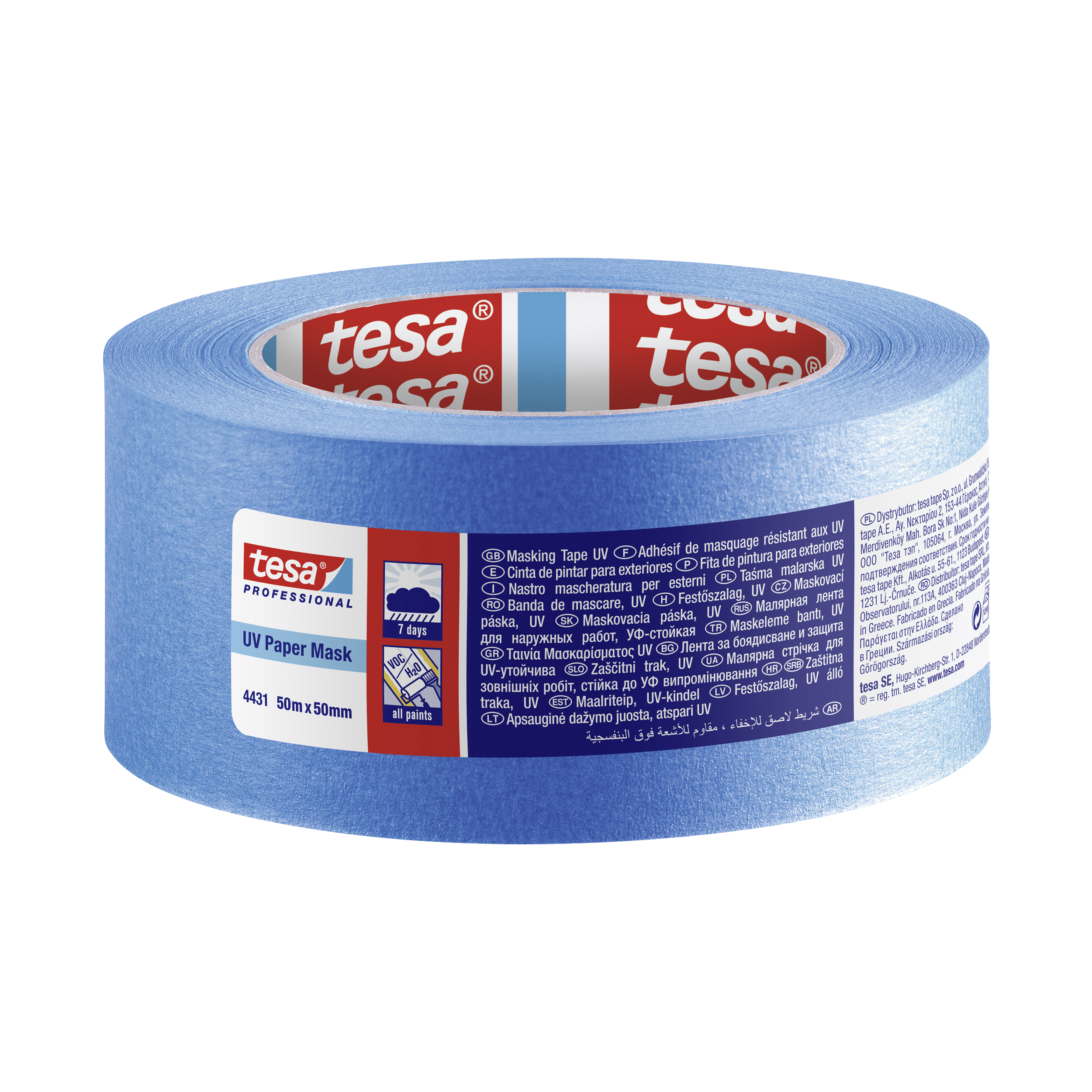 Taśma malarska tesa® 4431 to lekko krepowana papierowa taśma maskująca z akrylową substancją klejącą. Idealnie nadaje się do wszelkiego rodzaju zewnętrznych praca malarskich, np. to zabezpieczenia okien, balustrady balkonu, drzwi garażowych, itp. Nadaje się do stosowania z różnymi rodzajami farb. Odporna na działanie promieniowania UV przez 7 dni, co pozwala na wykonanie bardziej wymagających prac malarskich. Taśma łatwa w stosowaniu, zapewnia uzyskanie prostych i czystych krawędzi malarskich.