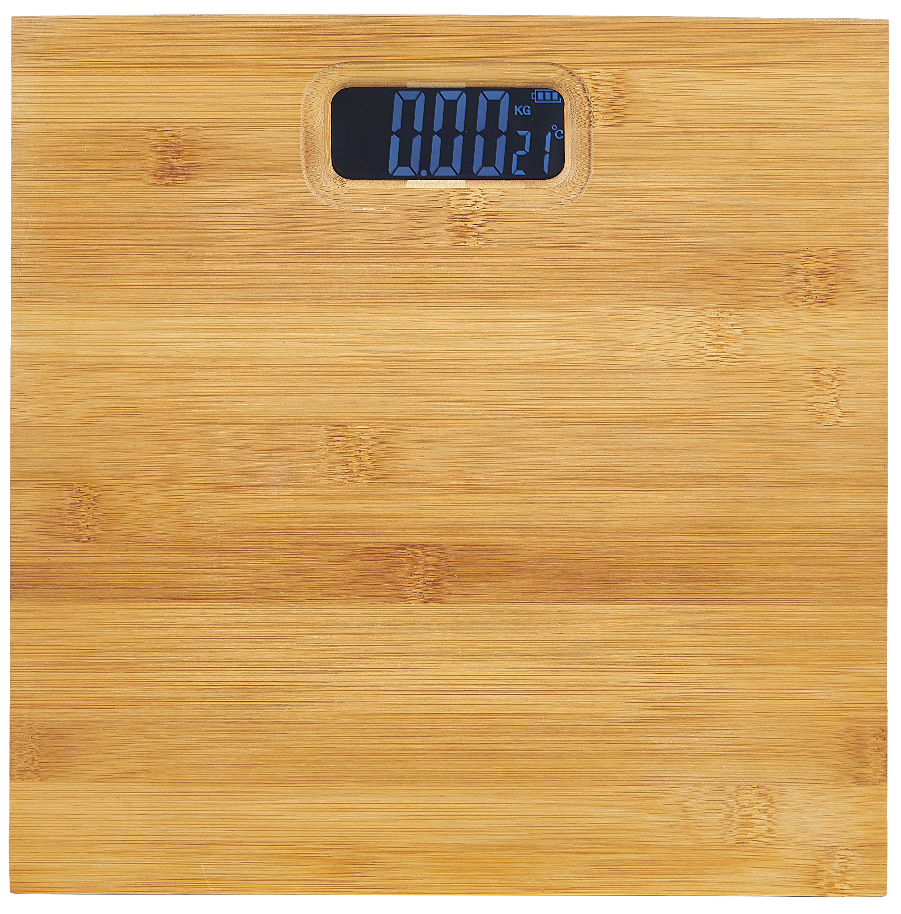 Elektroniczna waga łazienkowa, wykonana z naturalnego drewna bambusowego. Na wyświetlaczu pokazuje wskaźnik naładowania baterii oraz temperaturę. Zasilana na baterie 2 x AAA. Antypoślizgowe stopki zapewniają stabilny pomiar wagi. Wyposażona w 4 czujniki o wysokiej precyzji Strain Gauge
