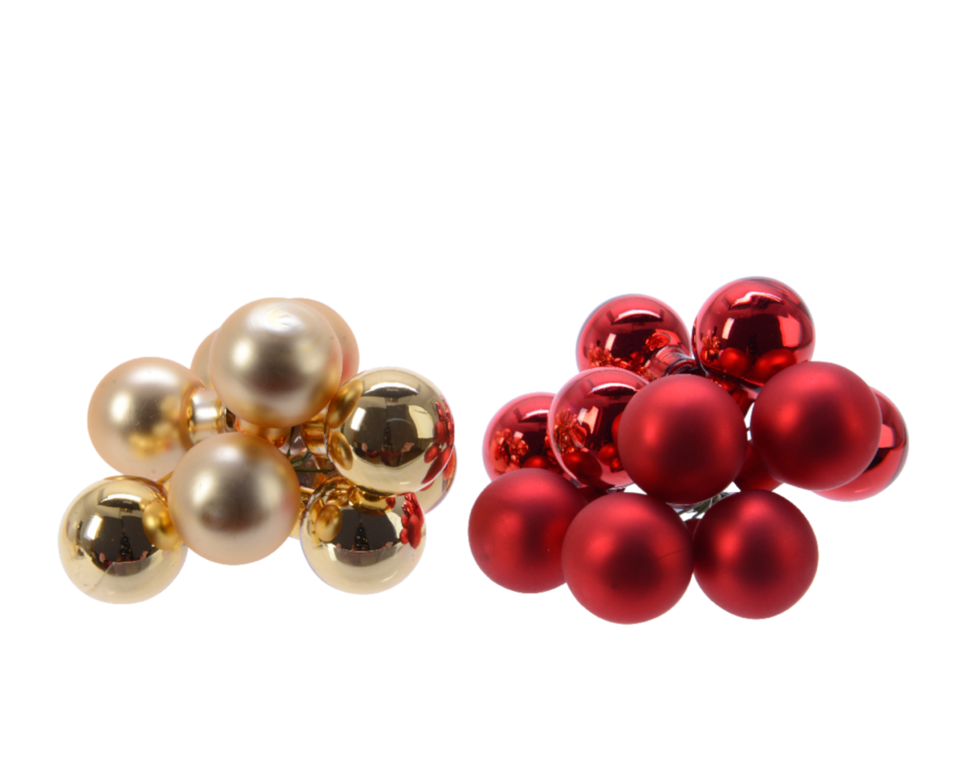 Zawieszki choinkowe szklane w zestawie 10 sztuk, w kolorach złotym i czerwonym, w postaci wiązki malutkich kuleczek. Te eleganckie zawieszki będą pięknie komponować się na każdej choince, dodając jej świątecznego blasku i klasy. Ich subtelny, ale efektowny design w połączeniu z ciepłymi, klasycznymi kolorami złota i czerwieni sprawia, że są doskonałym wyborem do tradycyjnych i nowoczesnych dekoracji choinkowych. Wykonane z wysokiej jakości szkła, idealnie odbijają światło, tworząc magiczną atmosferę świąt.