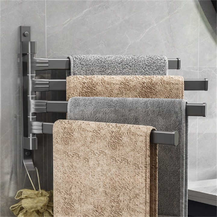 Wieszak na ręczniki łazienkowe, obrotowy drążek na ręczniki, montaż ścienny do łazienki, bez wiercenia, 4 drążki – 31,6 × 27,4 cm – szary